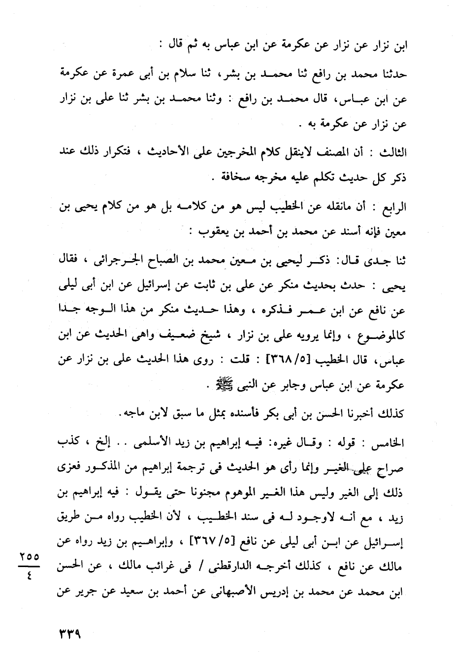 الرابع: أن ما نقله عن الخطيب ليس هو من كلامه بل هو من كلام يحيى بن معين فإنه أسند عن محمد بن أحمد بن يعقوب: