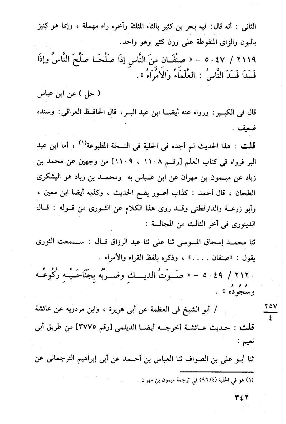 2119/ 5047 - "صِنْفَانِ مِنَ النَّاسِ إذَا صَلُحَا صَلُحَ النَّاسُ وإذَا فَسَدَا فَسَدَ النَّاسُ: العُلَمَاءُ وَالأُمَرَاءُ".
