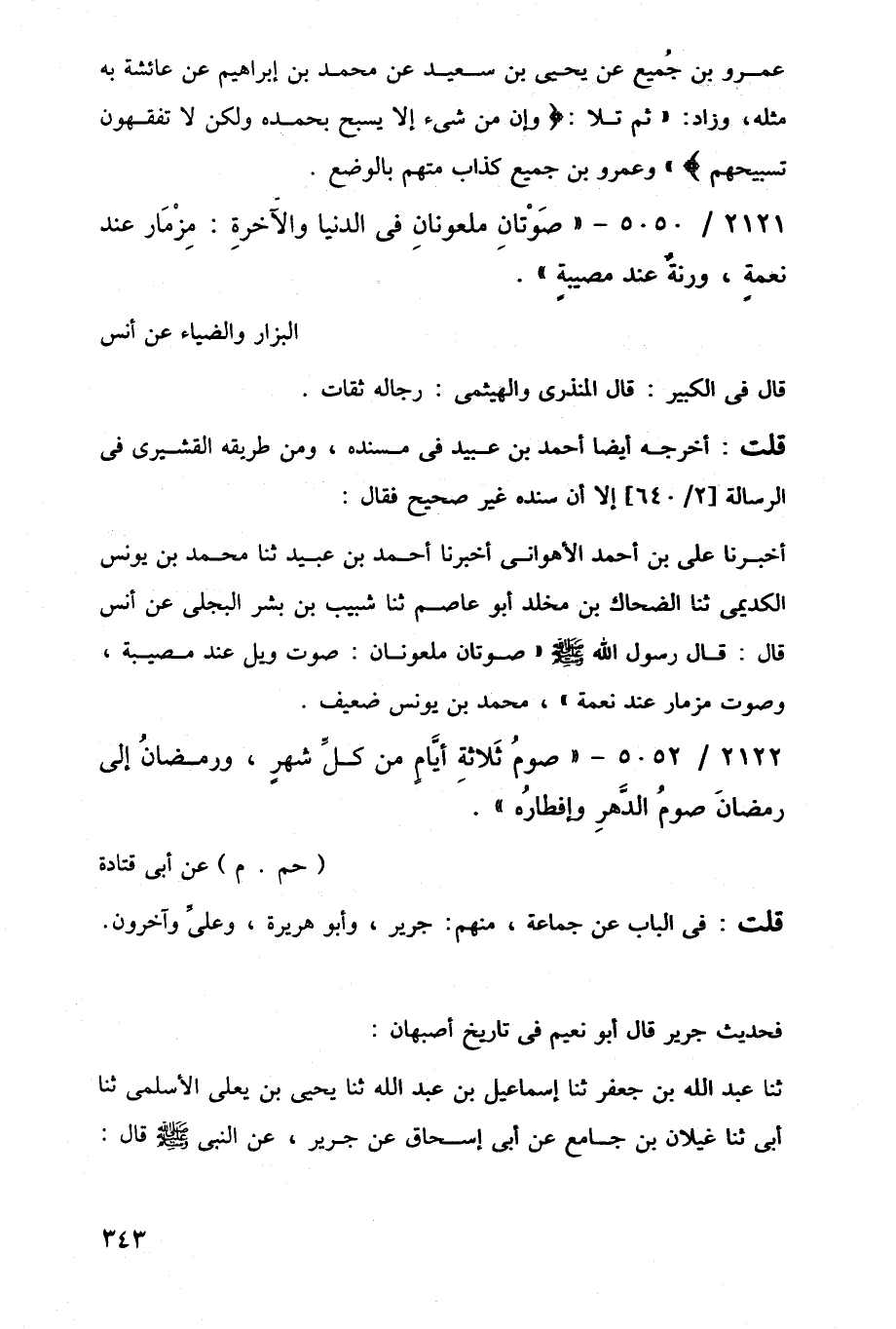 2121/ 5050 - "صَوْتانِ ملعونانِ في الدنيا والآخرةِ: مِزْمَار عند نعمةٍ، ورنةٌ عند مصيبةٍ".