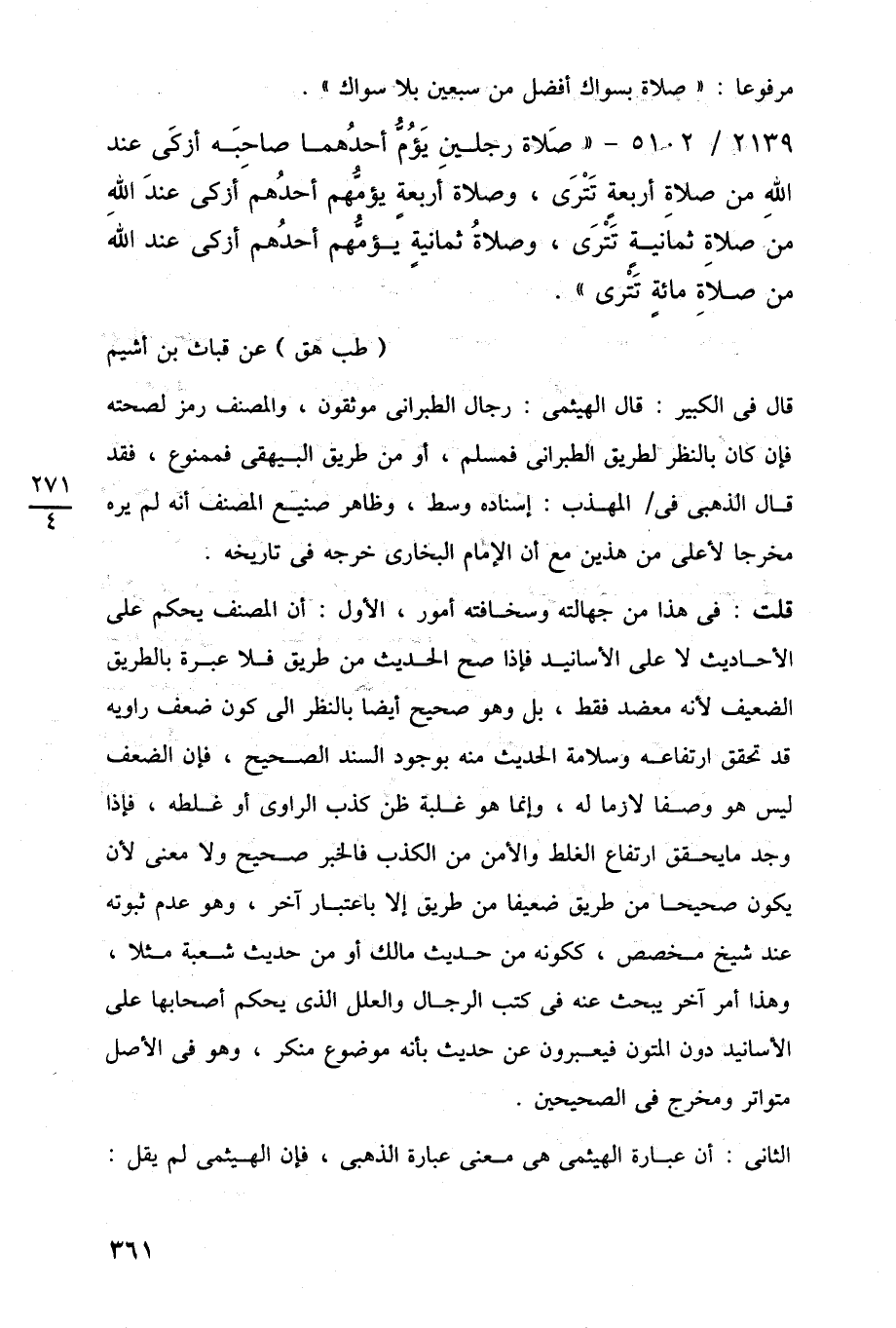 2139/ 5102 - "صَلاة رجلينِ يَؤُمُّ أحدُهما صاحِبَه أزكَى عند اللَّهِ من صلاةِ أربعةٍ تَتْرَى، وصلاة أربعةٍ يؤمُّهم أحدُهم أزكى عندَ اللَّهِ من صلاةِ ثمانية تَتْرَى، وصلاةُ ثمانيةٍ يؤمُّهم أحدُهم أزكى عند اللَّه من صلاةِ مائةٍ تَتْرى".