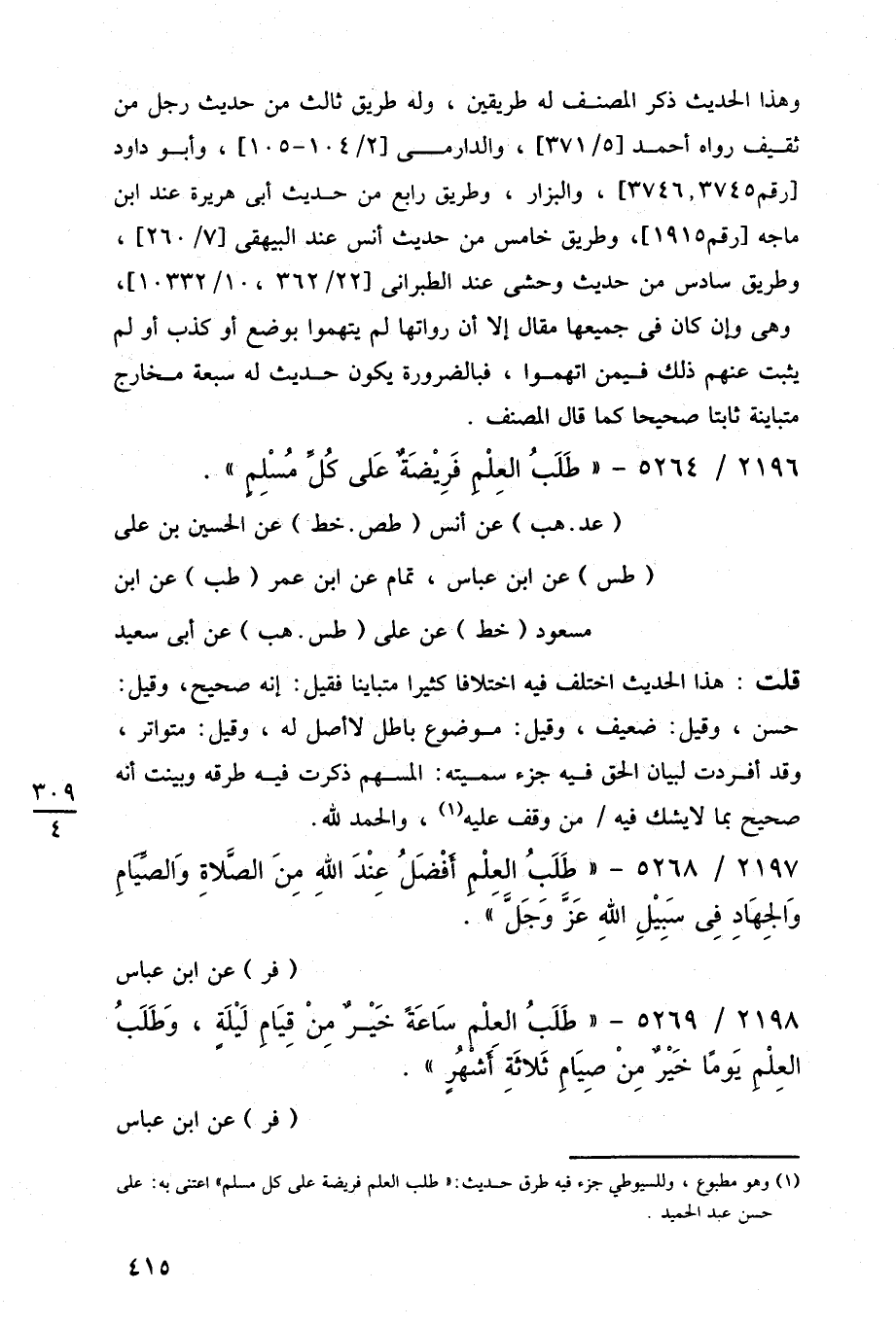 2196/ 5264 - "طَلَبُ العِلْم فَرِيْضَةٌ عَلى كُلِّ مُسْلِمٍ".