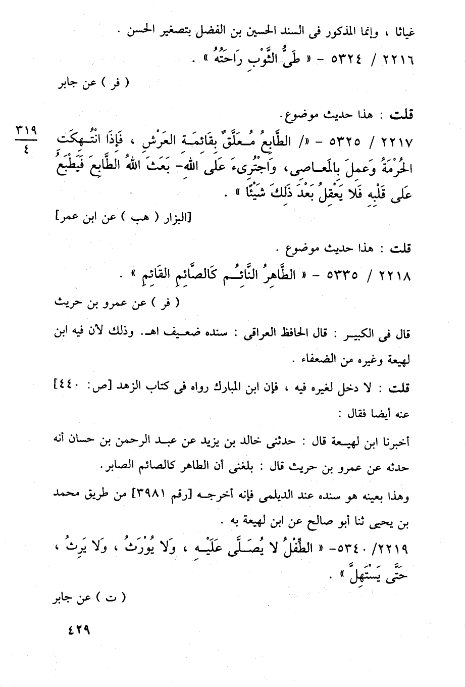 2218/ 5335 - "الطَّاهِرُ النَّائِمُ كَالصَّائِم القَائِمِ".