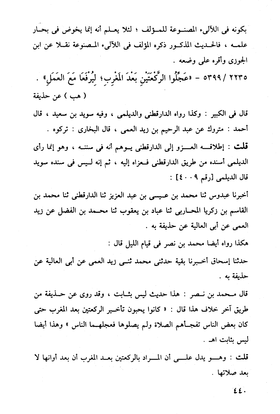 2235/ 5399 - "عَجِّلُوا الرَّكْعَتَيْنِ بَعْدَ المَغْرِبِ؛ لِيُرْفَعَا مَعَ العَمَلِ".