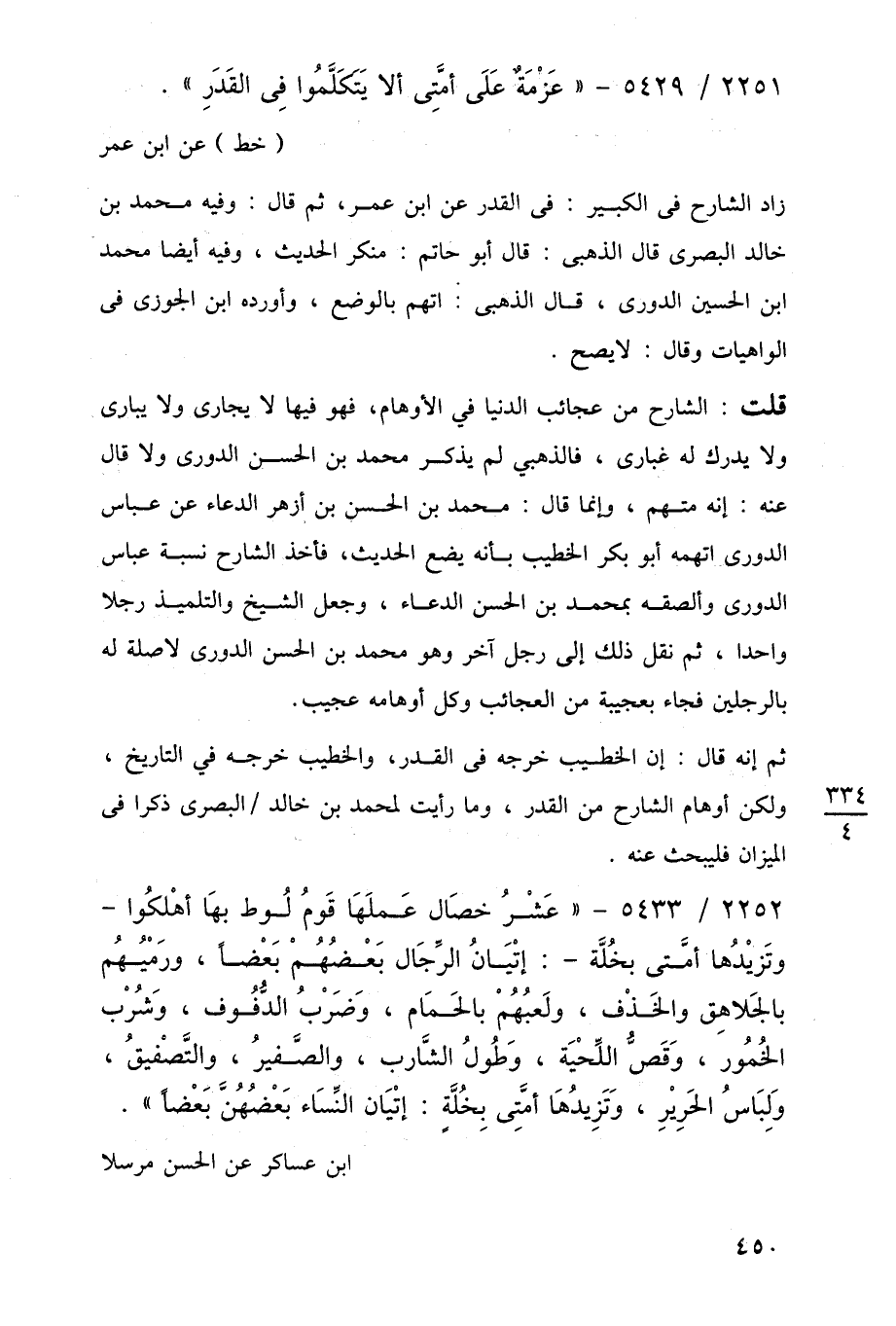 ثم إنه قال: إن الخطيب خرجه في القدر، والخطيب خرجه في التاريخ، ولكن أوهام الشارح من القدر، وما رأيت لمحمد بن خالد البصرى ذكرا في الميزان فليبحث عنه.