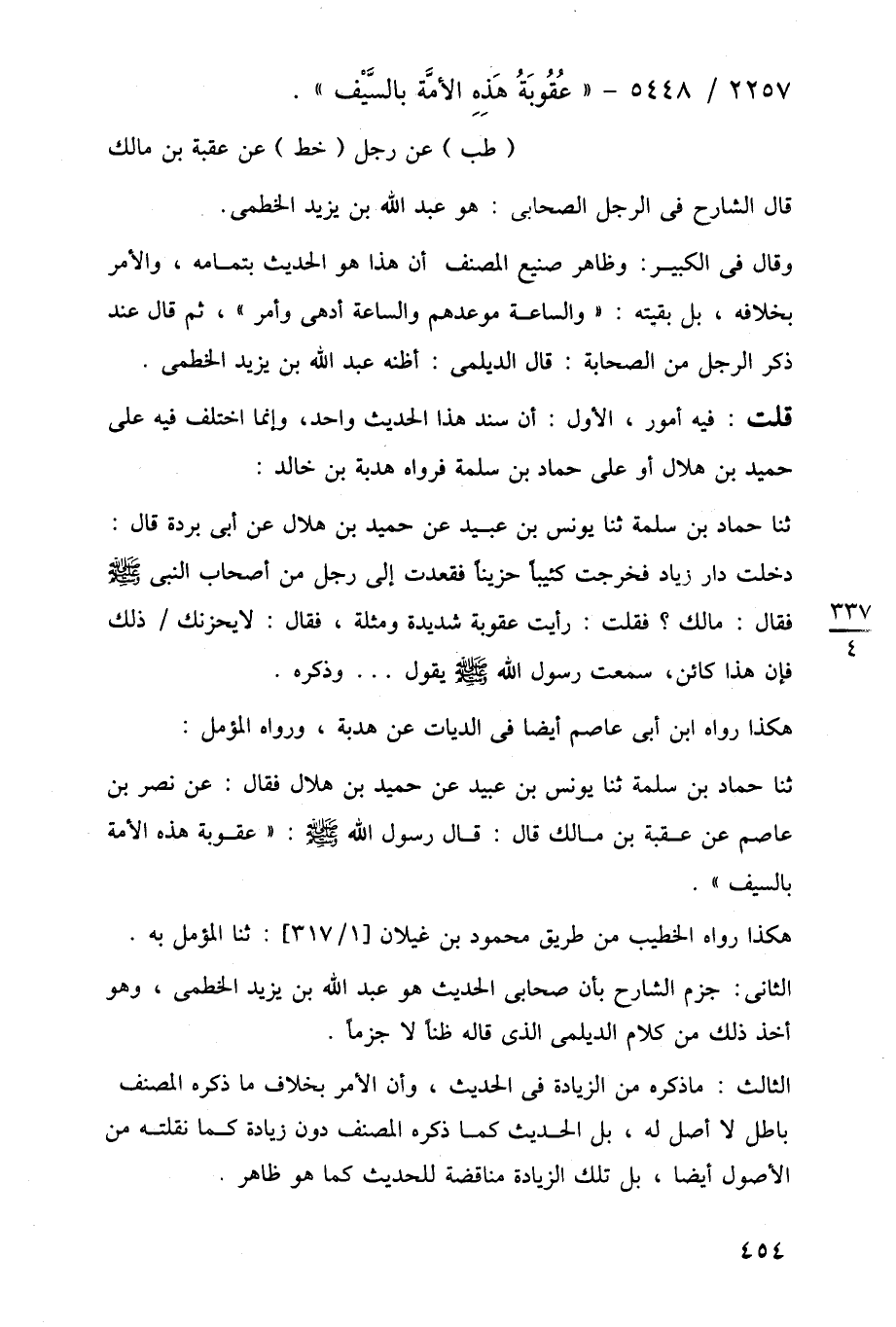 2257/ 5448 - "عُقُوبَةُ هَذِهِ الأمَّة بالسَّيْف".