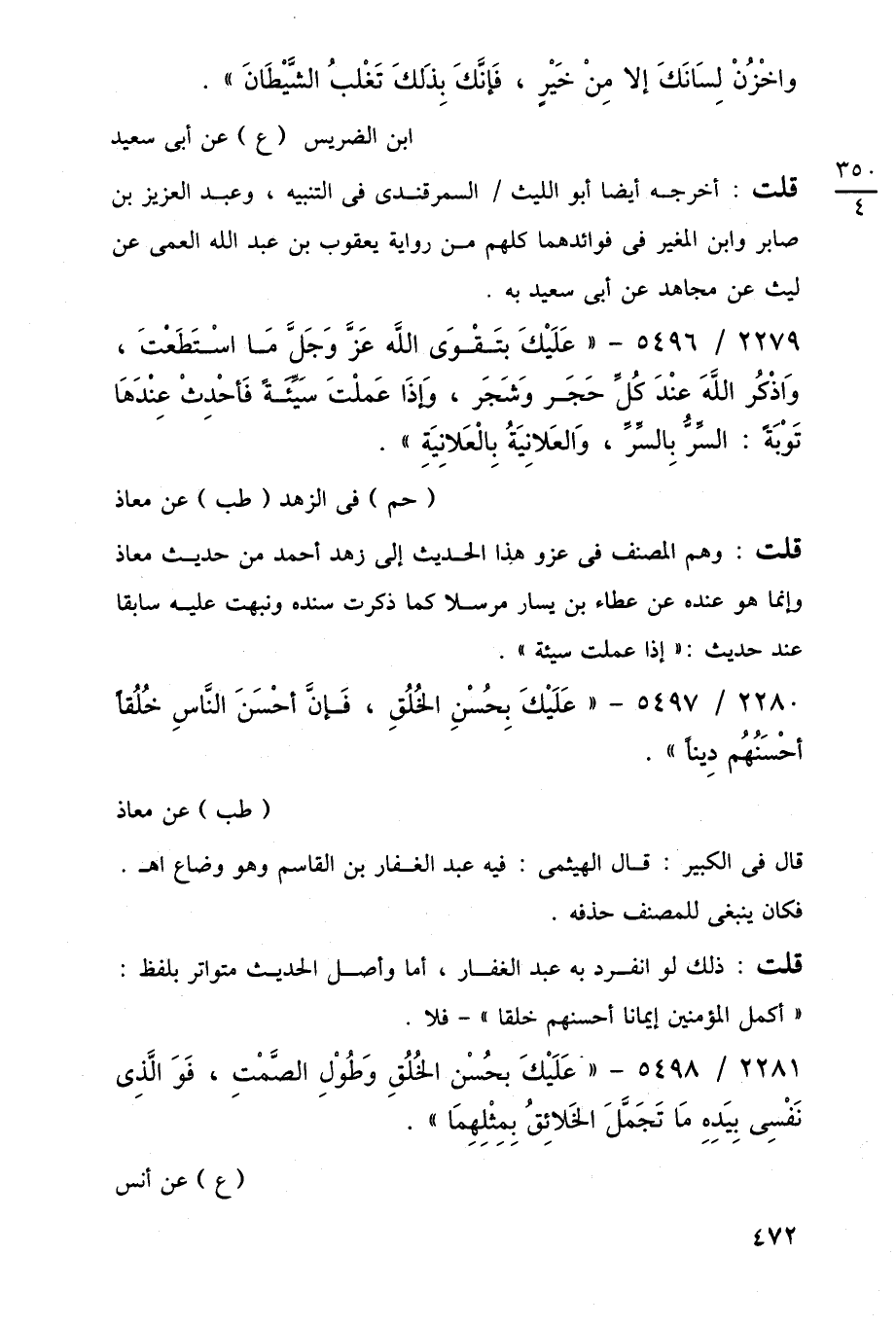 2280/ 5497 - "عَلَيْكَ بِحُسْنِ الخُلُقِ، فَإِنَّ أَحْسَنَ النَّاسِ خُلُقًا أحْسَنُهُم دِينًا".