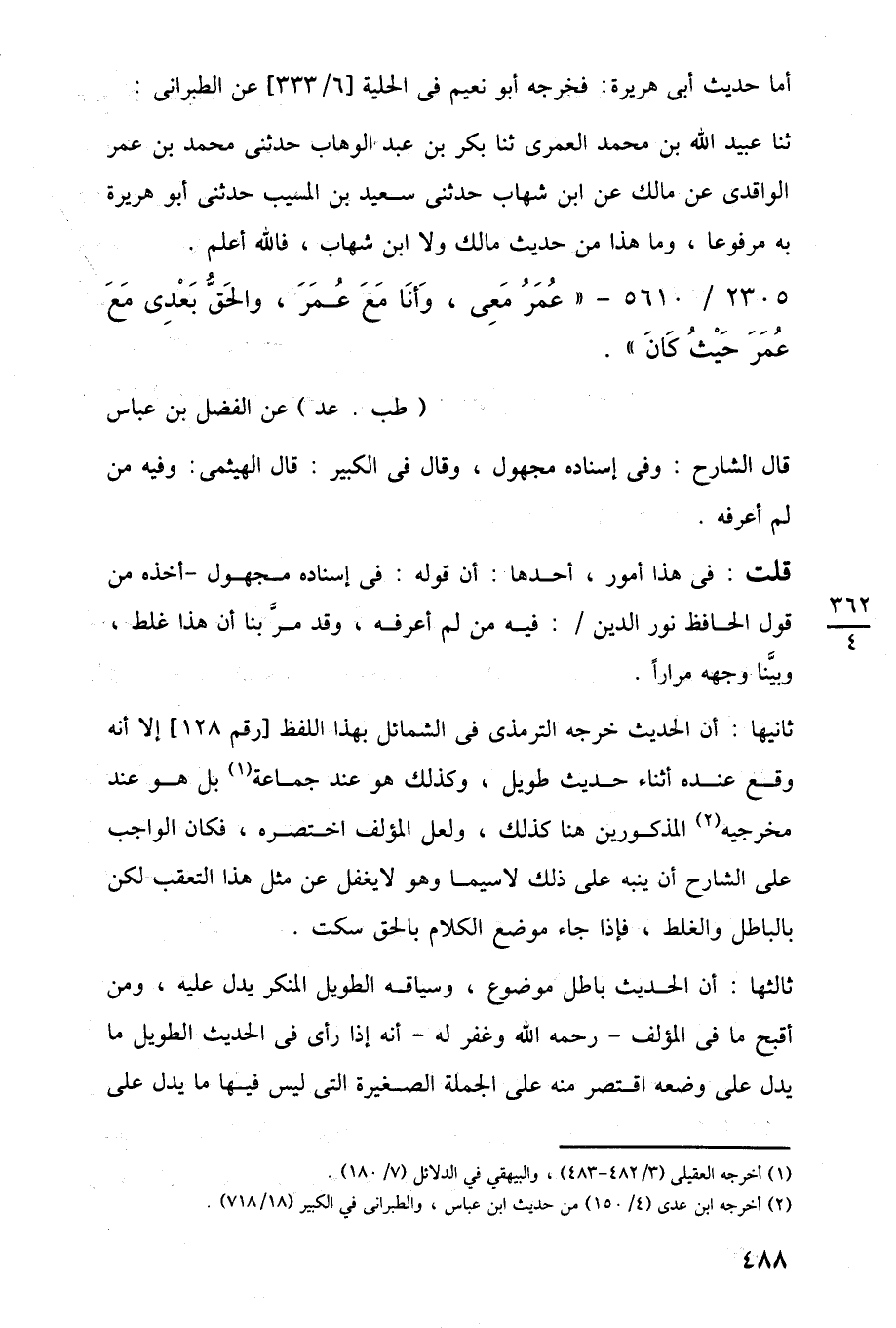 2305/ 5610 - "عُمَرُ مَعِى، وَأنَا مَعَ عُمَرَ، والحَقُّ بَعْدِى مَعَ عُمَرَ حَيْثُ كَانَ".