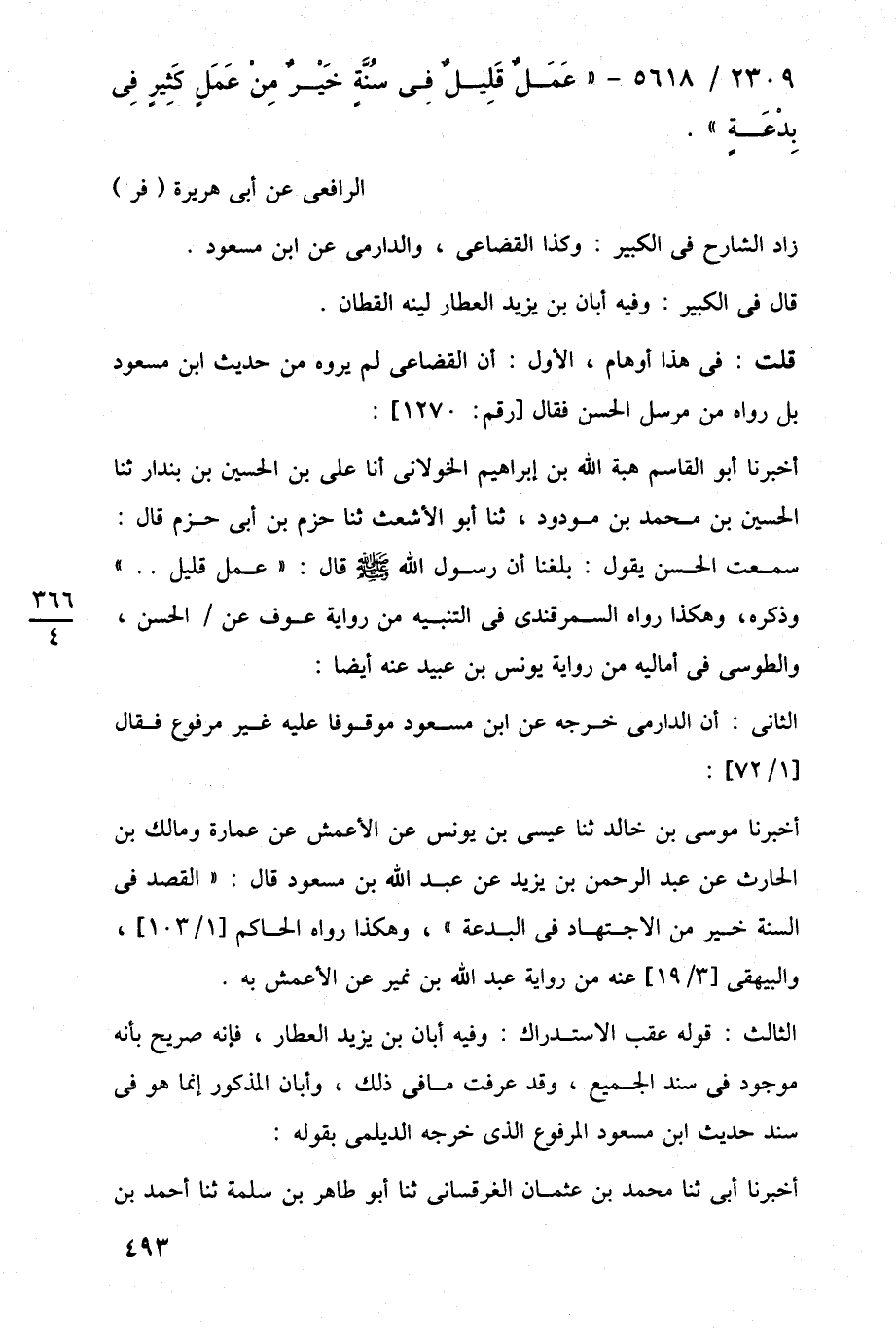 2309/ 5618 - "عَمَلٌ قَلِيلٌ فِي سُنَّة خَيْرٌ مِنْ عَمَل كَثِيرٍ فِي بِدْعَةٍ".