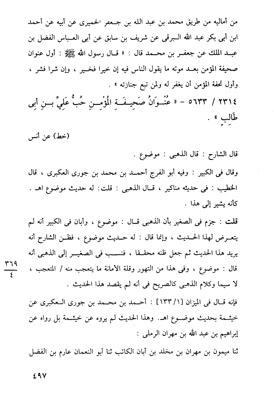 2314/ 5633 - "عُنْوَانُ صَحِيفَةِ المُؤْمِنِ حُبُّ عَلِيِّ بنِ أبِي طَالِبٍ".