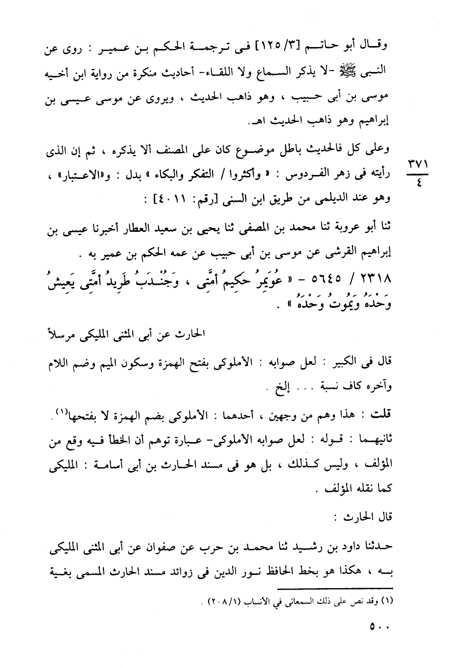 ثانيهما: قوله: لعل صوابه الأملوكى -عبارة توهم أن الخطأ فيه وقع من المؤلف، وليس كذلك، بل هو في مسند الحارث بن أبي أسامة: المليكى كما نقله المؤلف.