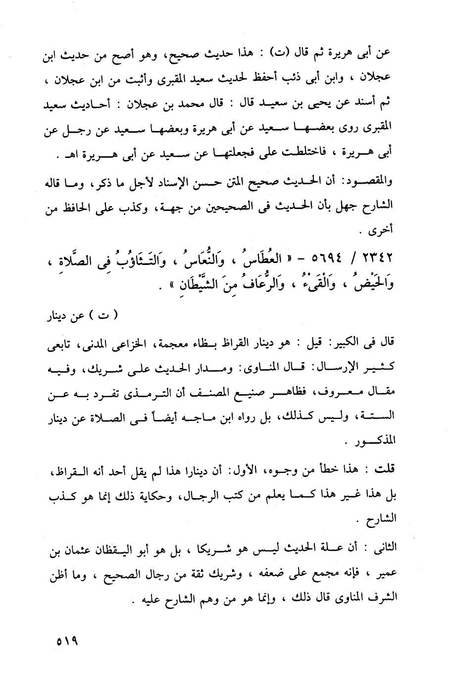 قلت: هذا خطأ من وجوه، الأول: أن دينارا هذا لم يقل أحد أنه القراظ، بل هذا غير هذا كما يعلم من كتب الرجال، وحكاية ذلك إنما هو كذب الشارح.