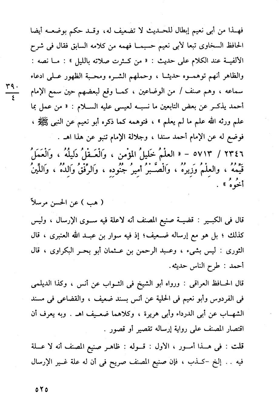 2346/ 5713 - "العلْمُ خَليلُ المؤْمن، وَالْعَقْلُ دَليلُهُ، وَالْعَمَلُ قَيِّمُهُ، والعِلْمُ وَزِيرُهُ، وَالْصَّبْرُ أَمِيرُ جُنُودِهِ، وَالرِّفْقُ وَالِدُهُ، وَاللِّينُ أخُوهُ".
