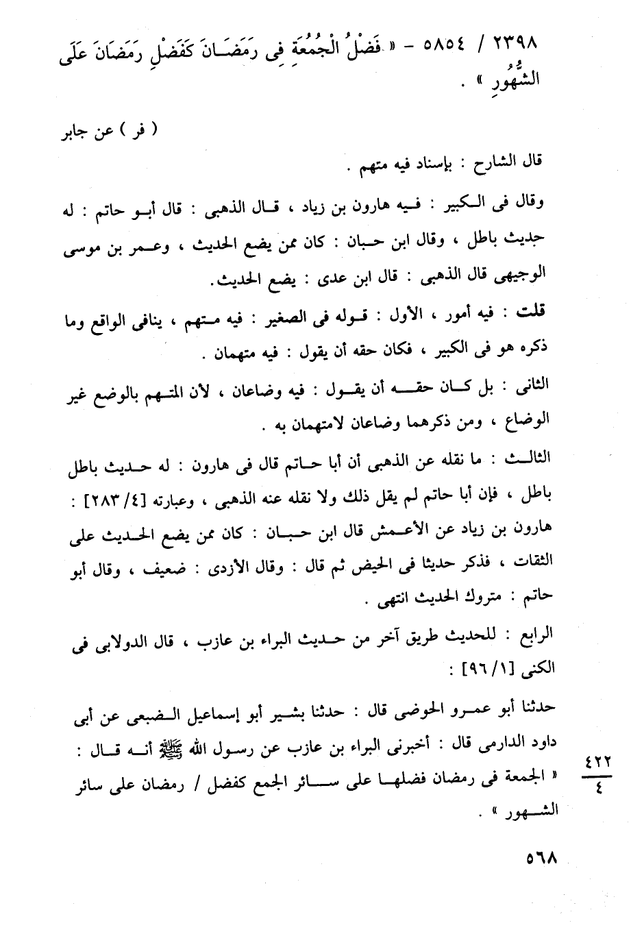 2398/ 5854 - "فَضْلُ الْجُمُعَة في رَمَضَانَ كَفَضْلِ رَمَضَانَ عَلَى الشُّهُورِ".