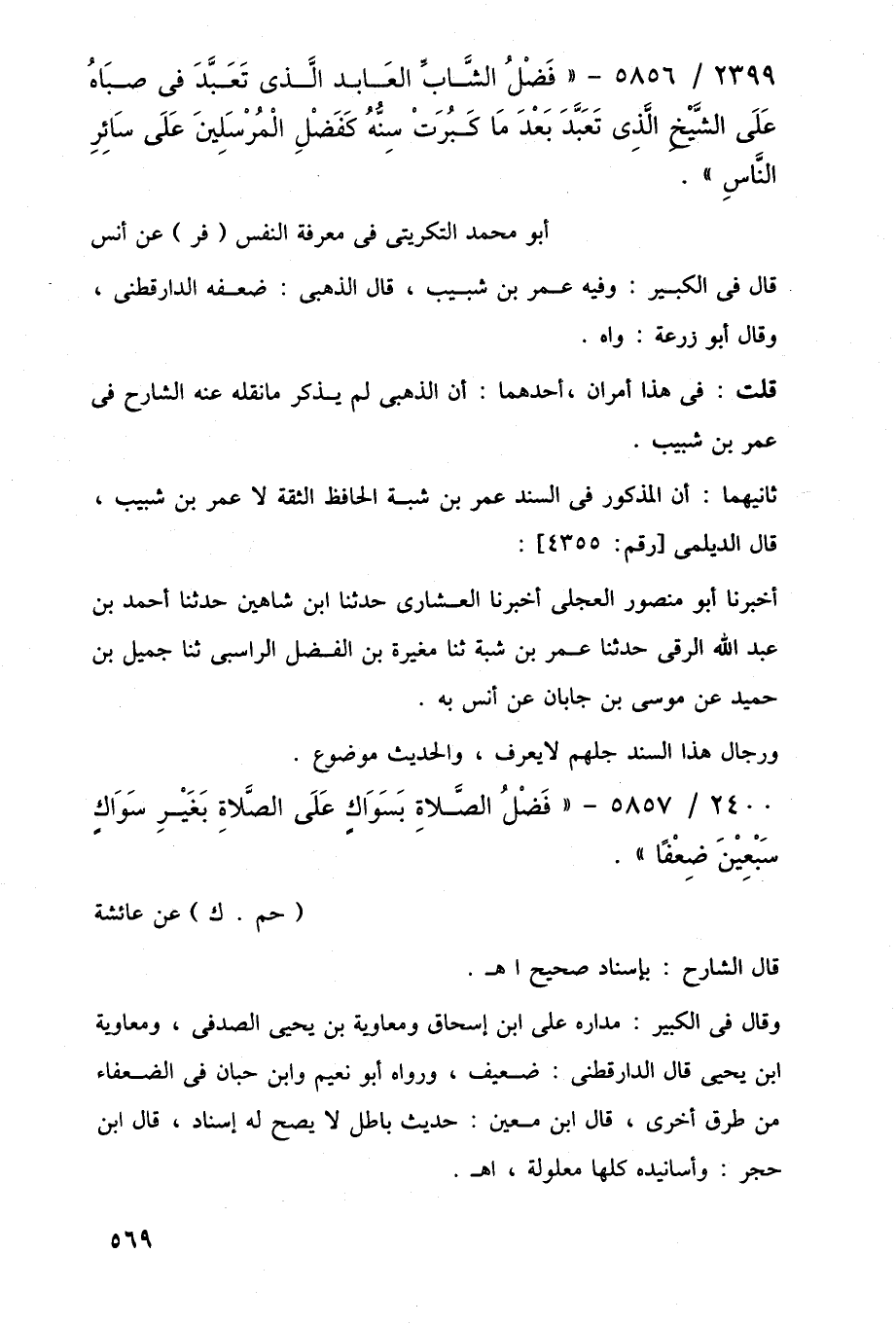 2399/ 5856 - "فَضْلُ الشَّابِّ العَابد الَّذي تَعَبَّدَ في صبَاهُ عَلَى الشَّيْخِ الَّذِي تَعَبَّدَ بَعْدَ مَا كَبُرَتْ سِنُّهُ كَفَضْلِ الْمُرْسَلِينَ عَلَى سَائِرِ النَّاسِ".