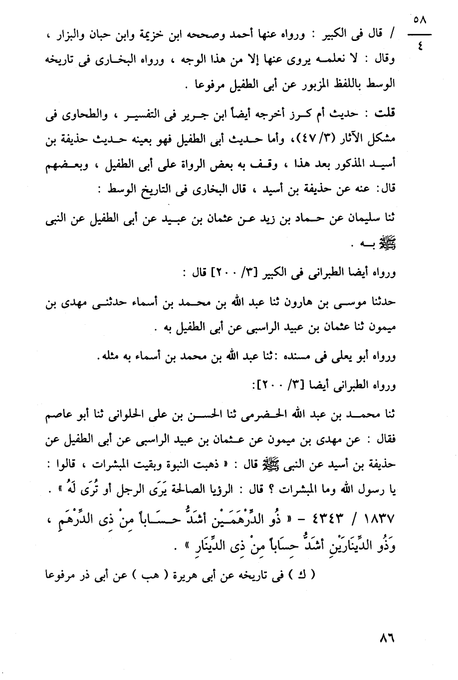 1837/ 4343 - "ذُو الدِّرْهَمَيْن أشَدُّ حسابًا مِنْ ذِى الدِّرْهَمِ، وَذُو الدِّينَارَيْنِ أشَدُّ حِسَابًا مِنْ ذِى الدِّينَارِ".