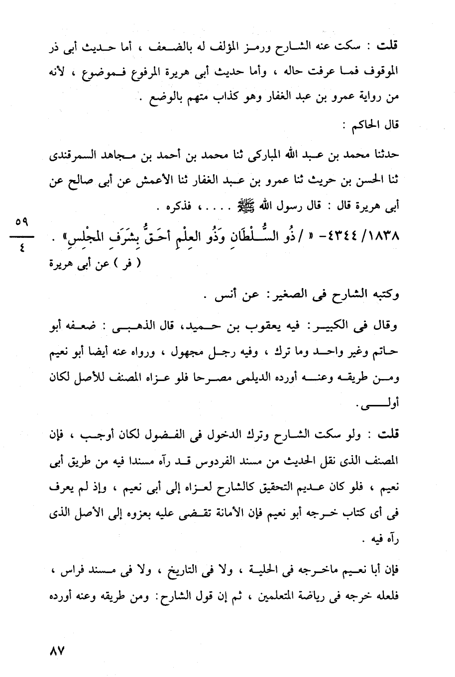 1838/ 4344 - "ذُو السُّلْطَانِ وَذُو العِلْم أحَقُّ بِشَرَفِ المجْلِسِ".