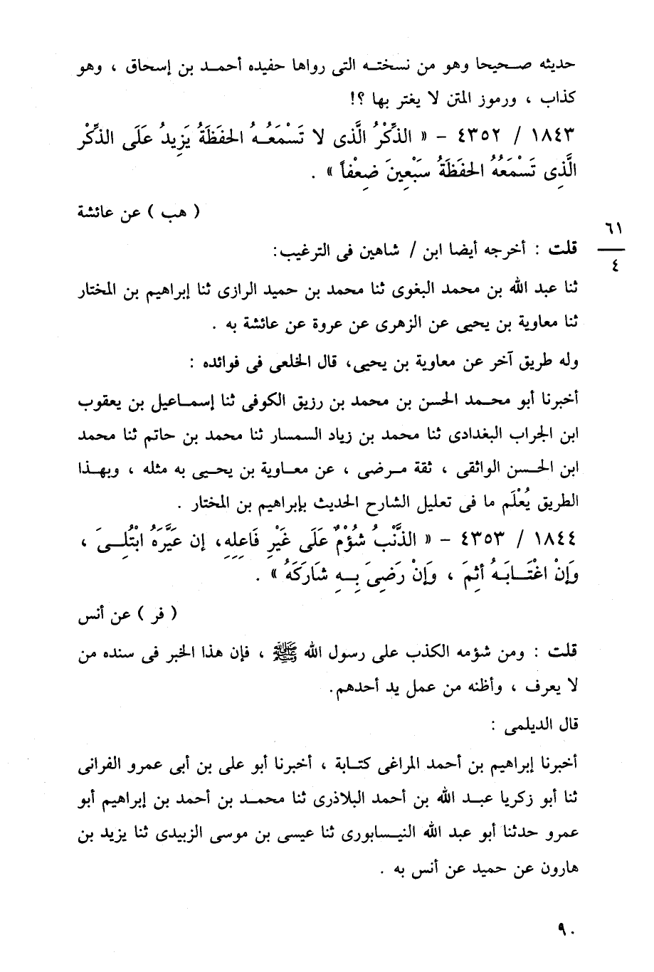 قلت: ومن شؤمه الكذب على رسول اللَّه -صلى اللَّه عليه وسلم-، فإن هذا الخبر في سنده من لا يعرف، وأظنه من عمل يد أحدهم.