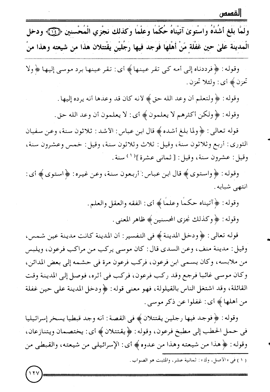 {وَلما بلغ أشده واستوى آتيناه حكما وعلما وَكَذَلِكَ نجزي الْمُحْسِنِينَ (14) وَدخل الْمَدِينَة على حِين غَفلَة من أَهلهَا فَوجدَ فِيهَا رجلَيْنِ يقتتلان هَذَا من شيعته وَهَذَا من}
