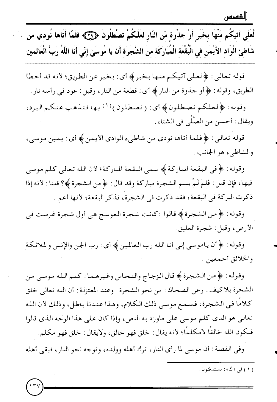 {لعَلي آتيكم مِنْهَا بِخَبَر أَو جذوة من النَّار لَعَلَّكُمْ تصطلون (29) فَلَمَّا أَتَاهَا نُودي من شاطئ الواد الْأَيْمن فِي الْبقْعَة الْمُبَارَكَة من الشَّجَرَة أَن يَا مُوسَى إِنِّي أَنا الله رب الْعَالمين}