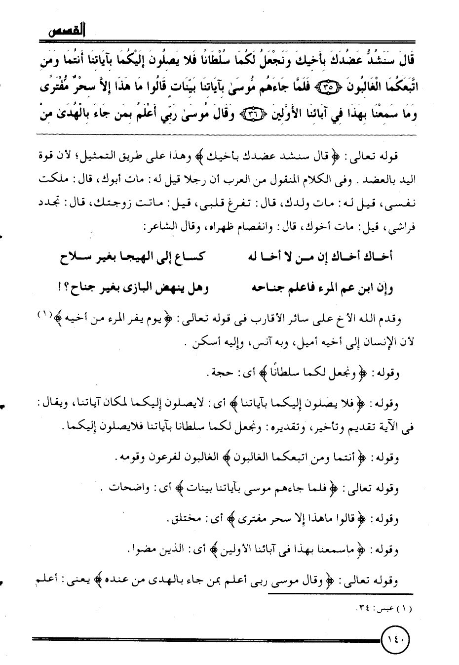 {قَالَ سنشد عضدك بأخيك ونجعل لَكمَا سُلْطَانا فَلَا يصلونَ إلَيْكُمَا بِآيَاتِنَا أَنْتُمَا وَمن اتبعكما الغالبون (35) فَلَمَّا جَاءَهُم مُوسَى بِآيَاتِنَا بَيِّنَات قَالُوا مَا هَذَا إِلَّا سحر مفترى وَمَا سمعنَا بِهَذَا فِي آبَائِنَا الْأَوَّلين (36) وَقَالَ مُوسَى رَبِّي أعلم بِمن جَاءَ بِالْهدى من}