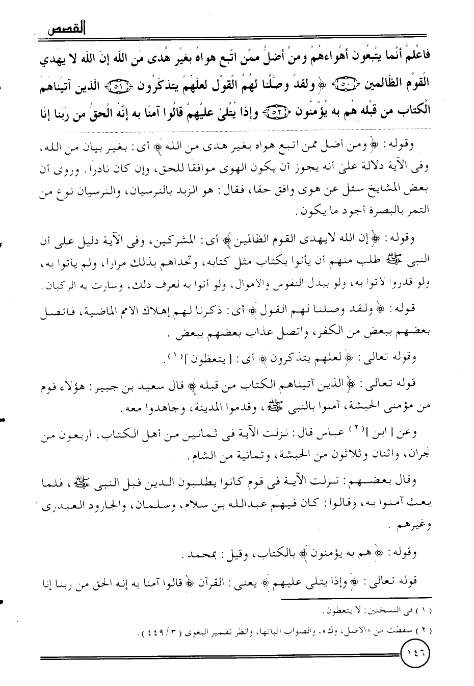 {فَاعْلَم أَنما يتبعُون أهواءهم وَمن أضلّ مِمَّن اتبع هَوَاهُ بِغَيْر هدى من الله إِن الله لَا يهدي الْقَوْم الظَّالِمين (50) (وَلَقَد وصلنا لَهُم القَوْل لَعَلَّهُم يتذكرون (51) الَّذين آتَيْنَاهُم الْكتاب من قبله هم بِهِ يُؤمنُونَ (52) وَإِذا يُتْلَى عَلَيْهِم قَالُوا آمنا بِهِ إِنَّه الْحق من رَبنَا إِنَّا}