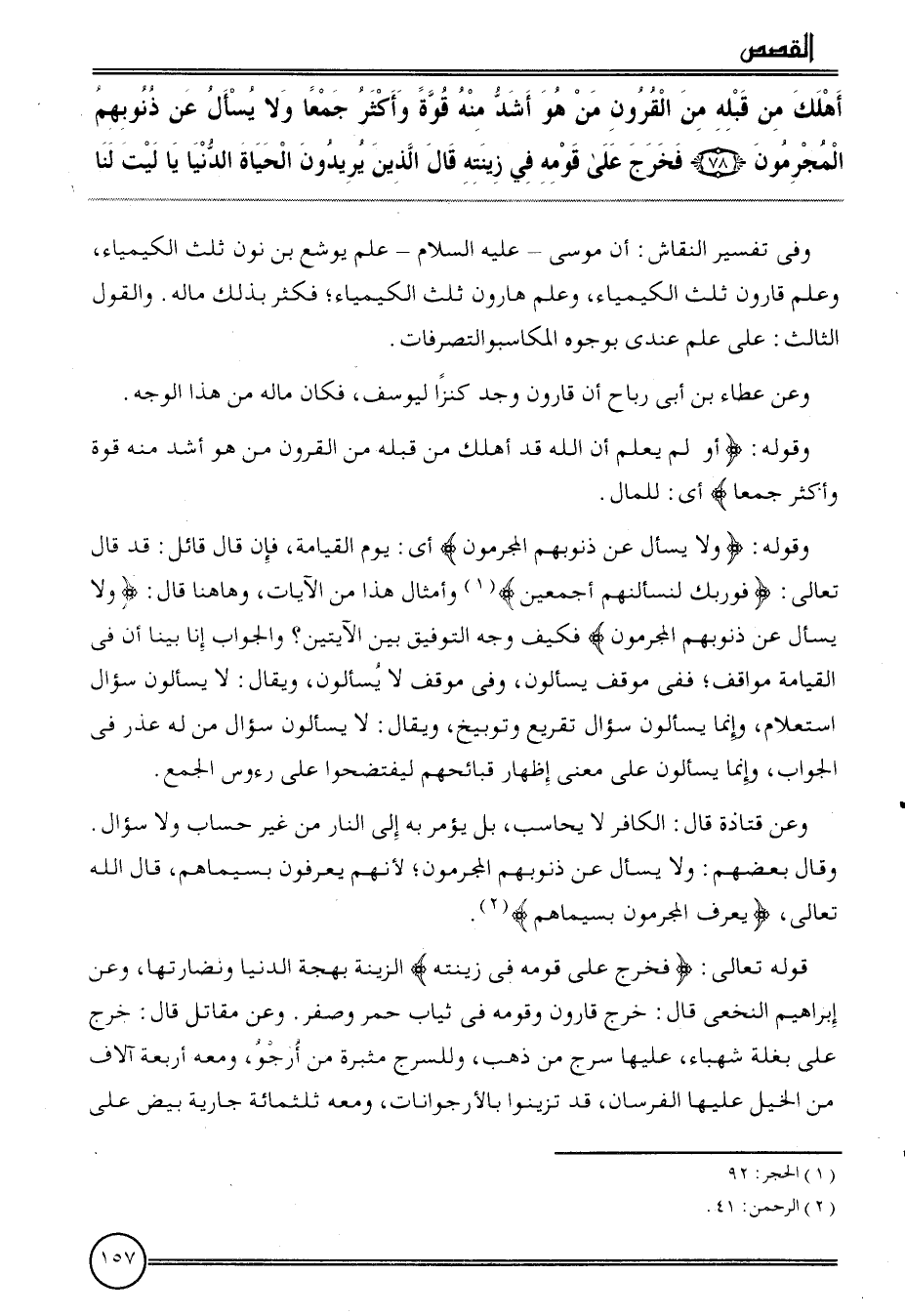 {أهلك من قبله من الْقُرُون من هُوَ أَشد مِنْهُ قُوَّة وَأكْثر جمعا وَلَا يسْأَل عَن ذنوبهم المجرمون (78) فَخرج على قومه فِي زينته قَالَ الَّذين يُرِيدُونَ الْحَيَاة الدُّنْيَا يَا لَيْت لنا}