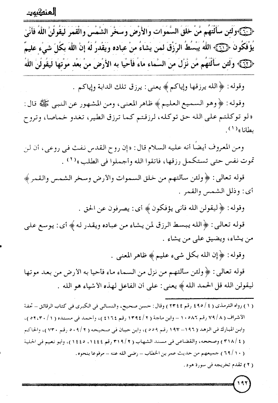 ( {60) وَلَئِن سَأَلتهمْ من خلق السَّمَوَات وَالْأَرْض وسخر الشَّمْس وَالْقَمَر ليَقُولن الله فَأنى يؤفكون (61) الله يبسط الرزق لمن يَشَاء من عباده وَيقدر لَهُ إِن الله بِكُل شَيْء عليم (62) وَلَئِن سَأَلتهمْ من نزل من السَّمَاء مَاء فأحيا بِهِ الأَرْض من بعد مَوتهَا ليَقُولن الله}