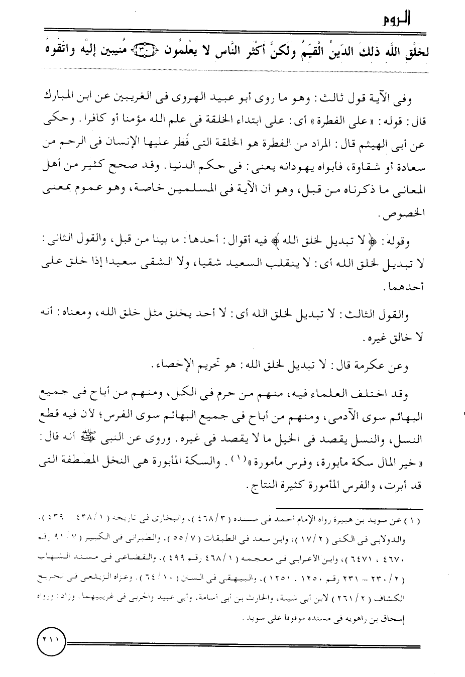 وَقَوله: {وَلَكِن أَكثر النَّاس لَا يعلمُونَ} ظَاهر الْمَعْنى، وأنشدوا فِي الْفطْرَة قَول كَعْب بن مَالك شعرًا: (إِن تقتلونا فدين الله فطرتنا ... وَالْقَتْل فِي الْحق عِنْد الله تَفْضِيل)