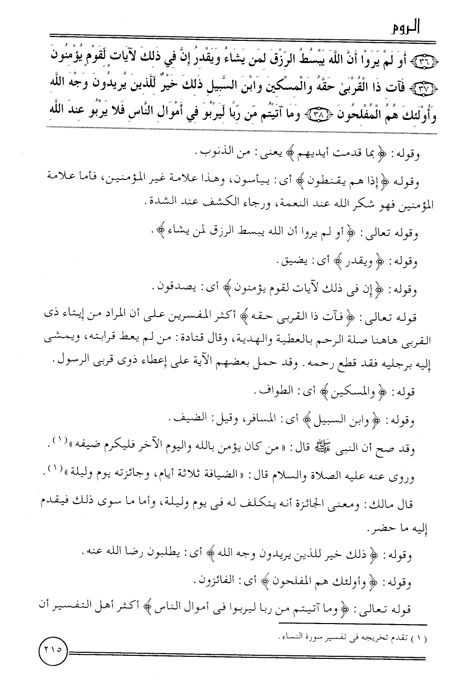 ( {36) أَو لم يرَوا أَن الله يبسط الرزق لمن يَشَاء وَيقدر إِن فِي ذَلِك لآيَات لقوم يُؤمنُونَ (37) فَآت ذَا الْقُرْبَى حَقه والمسكين وَابْن السَّبِيل ذَلِك خير للَّذين يُرِيدُونَ وَجه الله وَأُولَئِكَ هم المفلحون (38) وَمَا آتيتم من رَبًّا ليربو فِي أَمْوَال النَّاس فَلَا يَرْبُو عِنْد الله}