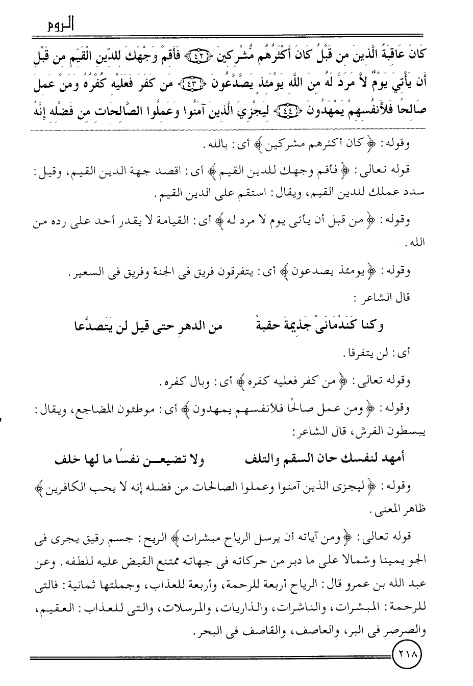 {كَانَ عَاقِبَة الَّذين من قبل كَانَ أَكْثَرهم مُشْرِكين (42) فأقم وَجهك للدّين الْقيم من قبل أَن يَأْتِي يَوْم لَا مرد لَهُ من الله يَوْمئِذٍ يصدعون (43) من كفر فَعَلَيهِ كفره وَمن عمل صَالحا فلأنفسهم يمهدون (44) ليجزي الَّذين آمنُوا وَعمِلُوا الصَّالِحَات من فَضله إِنَّه}