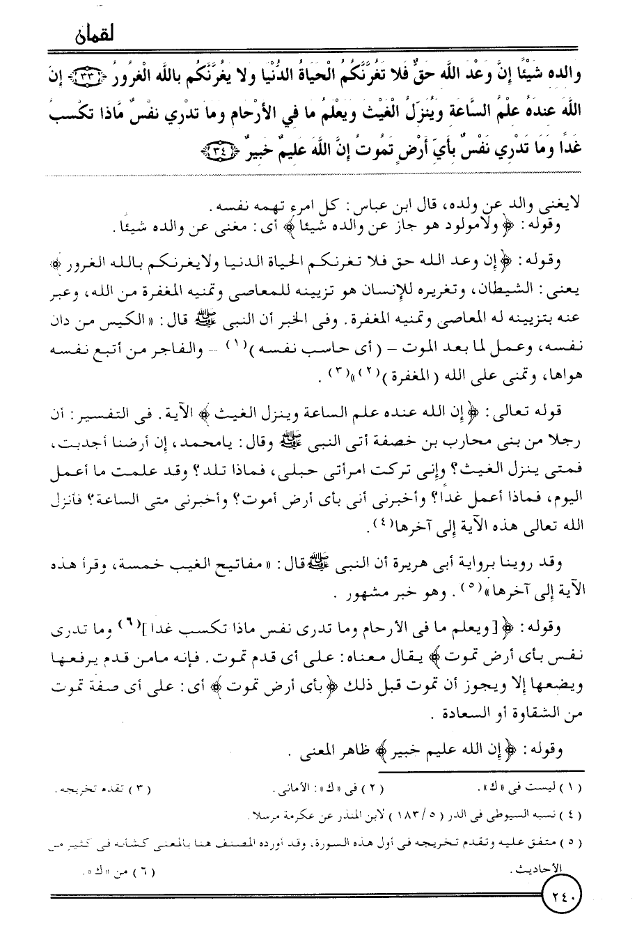 وَقد روينَا بِرِوَايَة أبي هُرَيْرَة أَن النَّبِي قَالَ: " مَفَاتِيح الْغَيْب خَمْسَة، وَقَرَأَ هَذِه الْآيَة إِلَى آخرهَا ". وَهُوَ خبر مَشْهُور.