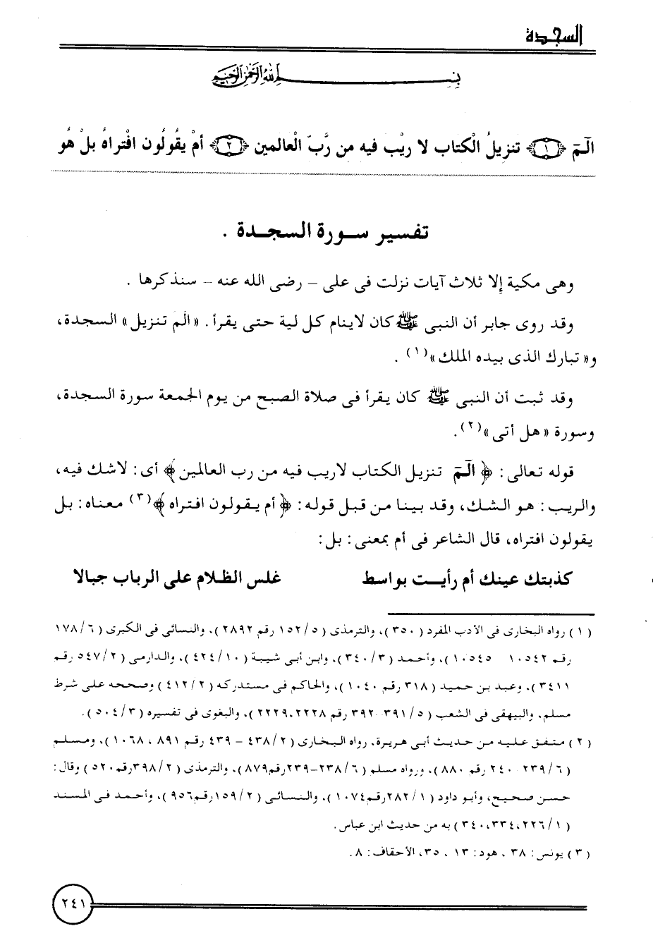 {الم (1) تَنْزِيل الْكتاب لَا ريب فِيهِ من رب الْعَالمين (2) أم يَقُولُونَ افتراه بل هُوَ}