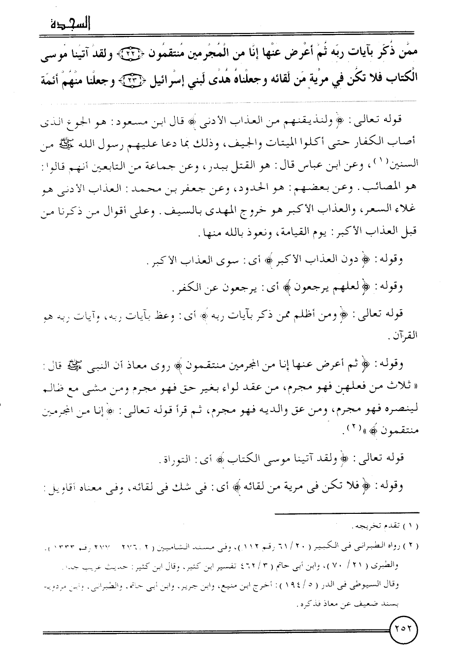 {مِمَّن ذكر بآيَات ربه ثمَّ أعرض عَنْهَا إِنَّا من الْمُجْرمين منتقمون (22) وَلَقَد آتَيْنَا مُوسَى الْكتاب فَلَا تكن فِي مرية من لِقَائِه وجعلناه هدى لبني إِسْرَائِيل (23) وَجَعَلنَا مِنْهُم أَئِمَّة}