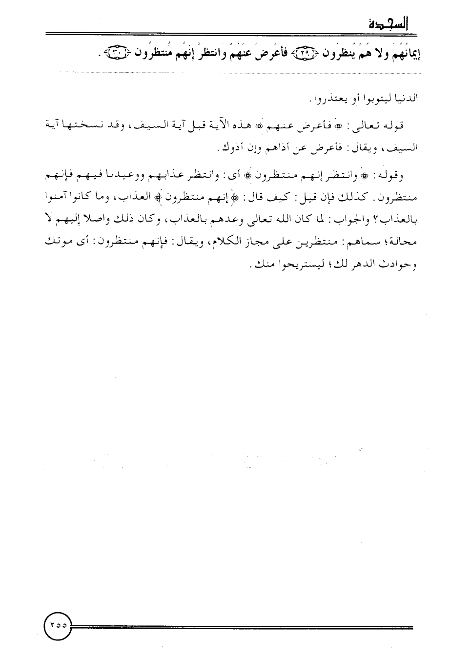 {إِيمَانهم وَلَا هم ينظرُونَ (29) فاعرض عَنْهُم وانتظر إِنَّهُم منتظرون (30) . الدُّنْيَا ليتوبوا أَو يعتذروا.