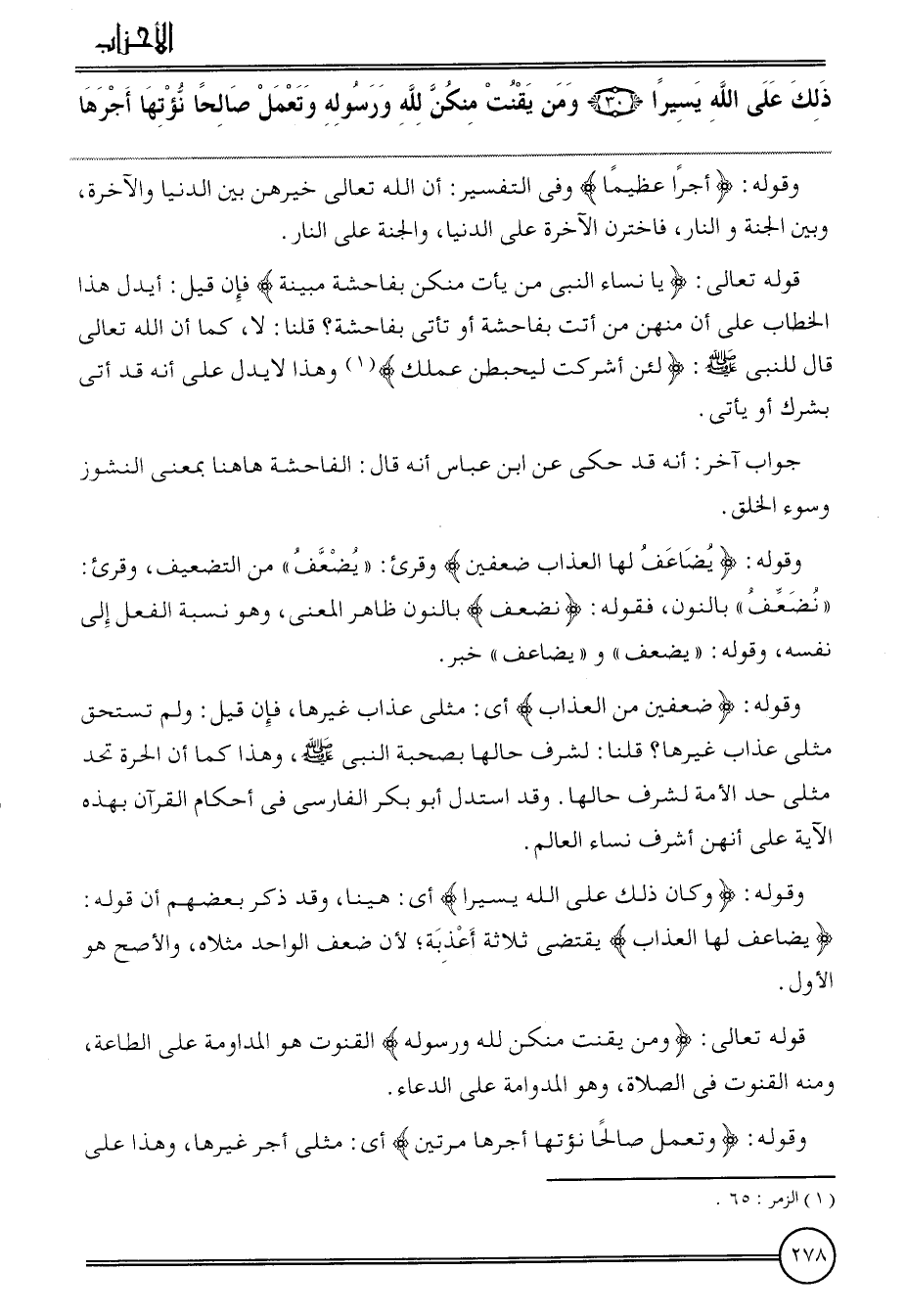 {ذَلِك على الله يَسِيرا (30) وَمن يقنت مِنْكُن لله وَرَسُوله وتعمل صَالحا نؤتها أجرهَا}