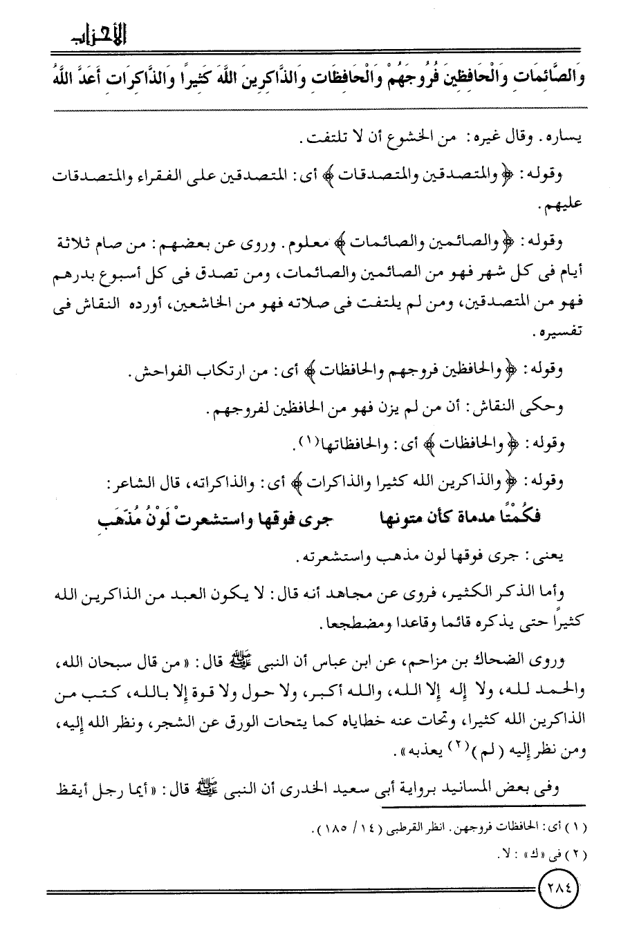 وَقَوله: {والذاكرين الله كثيرا وَالذَّاكِرَات} أَي: والذاكراته، قَالَ الشَّاعِر: