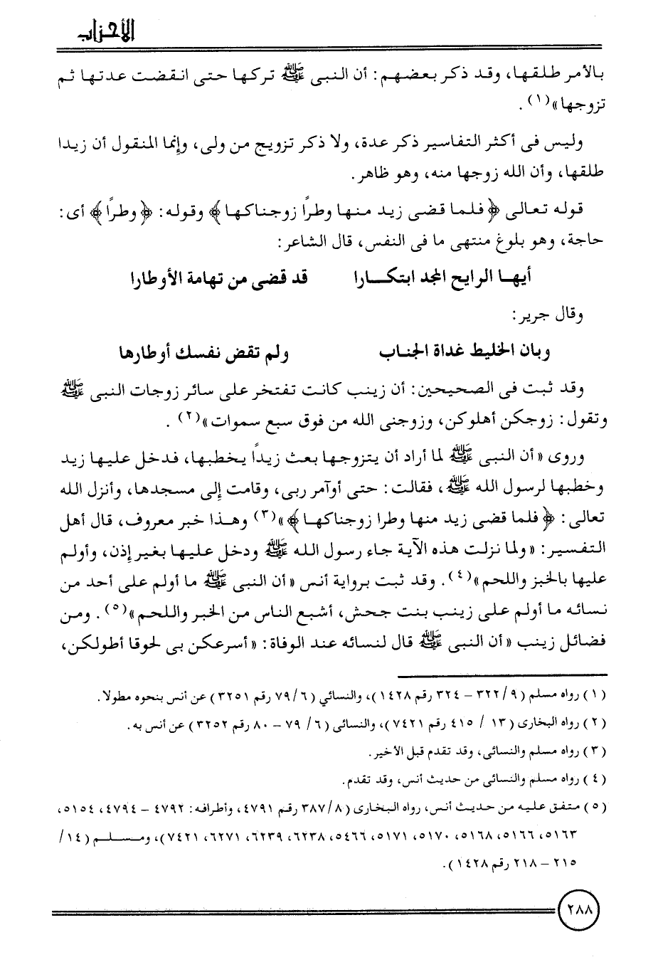 وَلَيْسَ فِي أَكثر التفاسير ذكر عدَّة، وَلَا ذكر تَزْوِيج من ولي، وَإِنَّمَا الْمَنْقُول أَن زيدا طَلقهَا، وَأَن الله زَوجهَا مِنْهُ، وَهُوَ ظَاهر.