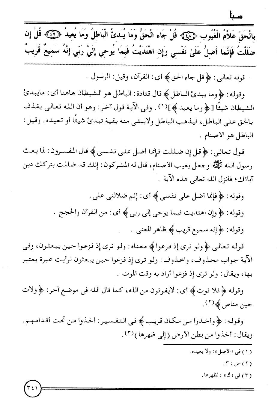 {بِالْحَقِّ علام الغيوب (48) قل جَاءَ الْحق وَمَا يبدئ الْبَاطِل وَمَا يُعِيد (49) قل إِن ضللت فَإِنَّمَا أضلّ على نَفسِي وَإِن اهتديت فبمَا يوحي إِلَيّ رَبِّي إِنَّه سميع قريب}
