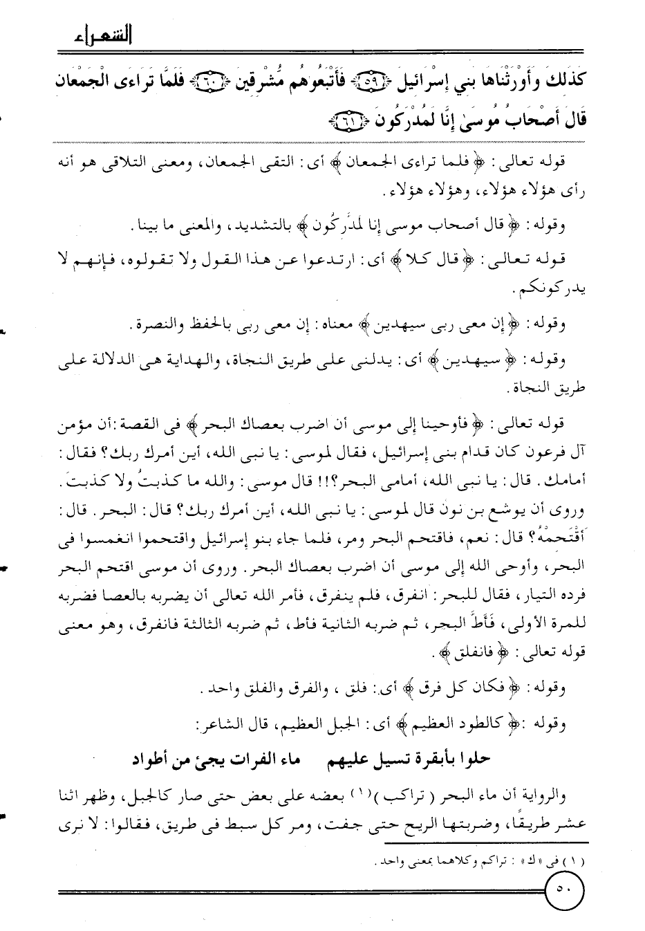 وَالرِّوَايَة أَن مَاء الْبَحْر (تراكب) بعضه على بعض حَتَّى صَار كالجبل، وَظهر اثْنَا عشر طَرِيقا، وضربتها الرّيح حَتَّى جَفتْ، وَمر كل سبط فِي طَرِيق، فَقَالُوا: لَا نرى