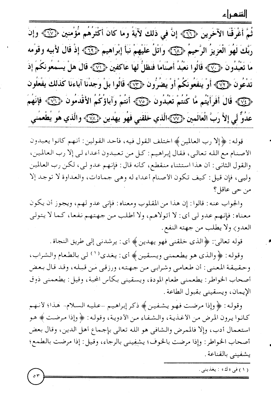 {ثمَّ أغرقنا الآخرين (66) إِن فِي ذَلِك لآيَة وَمَا كَانَ أَكْثَرهم مُؤمنين (67) وَإِن رَبك لَهو الْعَزِيز الرَّحِيم (68) واتل عَلَيْهِم نبأ إِبْرَاهِيم (69) إِذْ قَالَ لِأَبِيهِ وَقَومه مَا تَعْبدُونَ (70) قَالُوا نعْبد أصناما فنظل لَهَا عاكفين (71) قَالَ هَل يسمعونكم إِذْ تدعون (72) أَو ينفعوكم أَو يضرون (73) قَالُوا بل وجدنَا آبَاءَنَا كَذَلِك يَفْعَلُونَ (74) قَالَ أَفَرَأَيْتُم مَا كُنْتُم تَعْبدُونَ (75) أَنْتُم وآباؤكم الأقدمون (76) فَإِنَّهُم عَدو لي إِلَّا رب الْعَالمين (77) الَّذِي خلقني فَهُوَ يهدين (78) وَالَّذِي هُوَ يطمعني