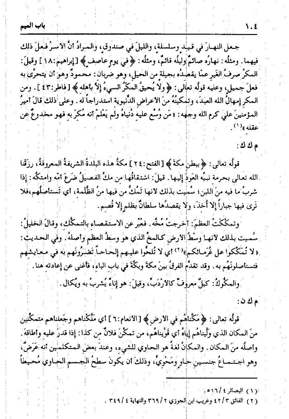 وتمككت العظم: أخرجت مخه. فعبر عن الاستقصاء بالتمكك، وقال الخليل: سميت بذلك لأنها وسط الأرض كالمخ الذي هو وسط العظم وأصله. وفي الحديث: ((لا تمككوا على غرمائكم)) أي لا تلحوا عليهم إلحاحًا تضرونهم به في معايشهم فتستأصلونهم به. وقد تقدم الفرق بين مكة وبكة في باب الباء، فأغنى عن إعادته هنا.