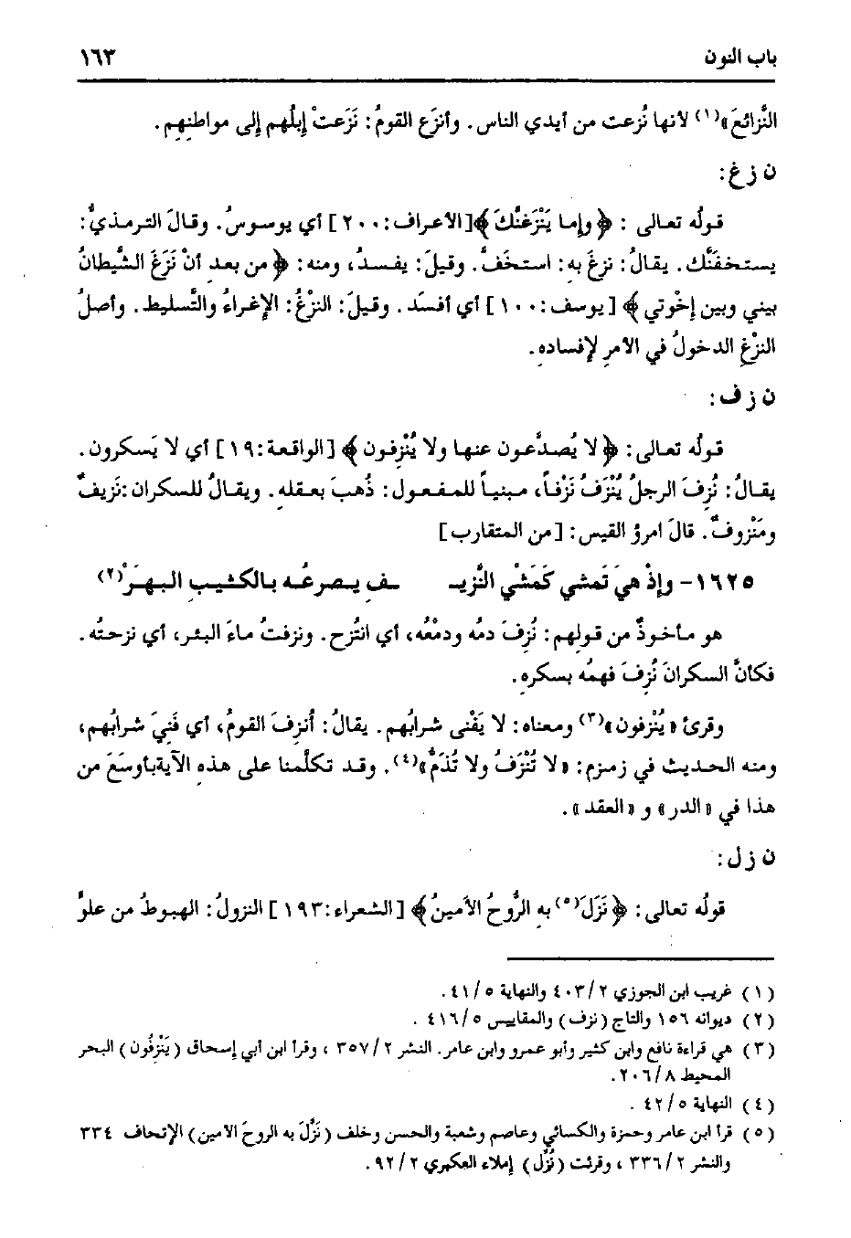 وقرئ ((ينزفون)) ومعناه: لا يفنى شرابهم. ويقال: أنزف القوم، أي فني شرابهم، ومنه الحديث في زمزم: ((لا تنزف ولا تذم)). وقد تكلمنا على هذه الآية بأوسع من هذا في ((الدار)) و ((العقد)).