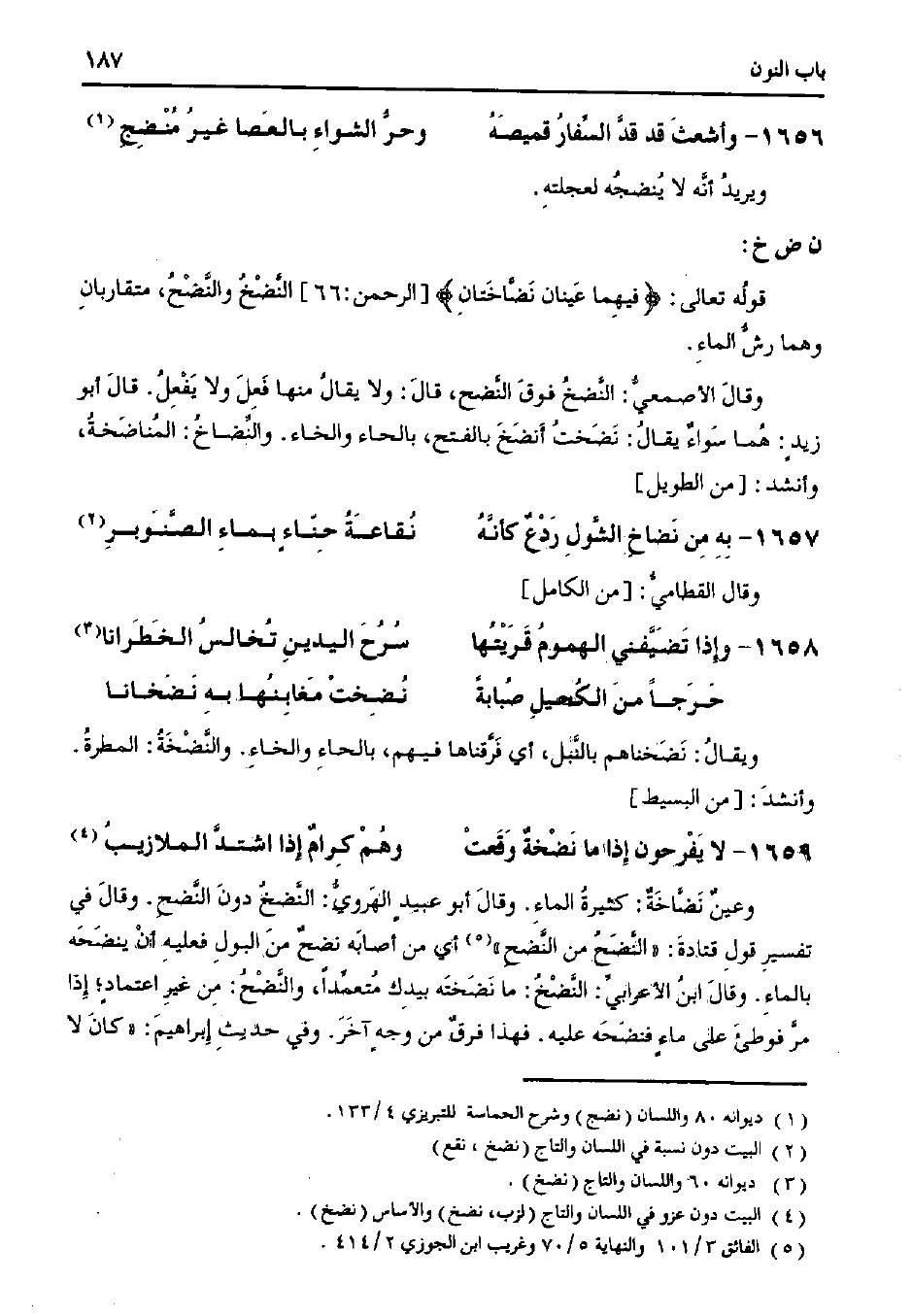 ويقال: نضخناهم؟؟؟، أي فرقناها فيهم، بالحاء والخاء. والنضخة: المطرة. وأنشد: [من البسيط]