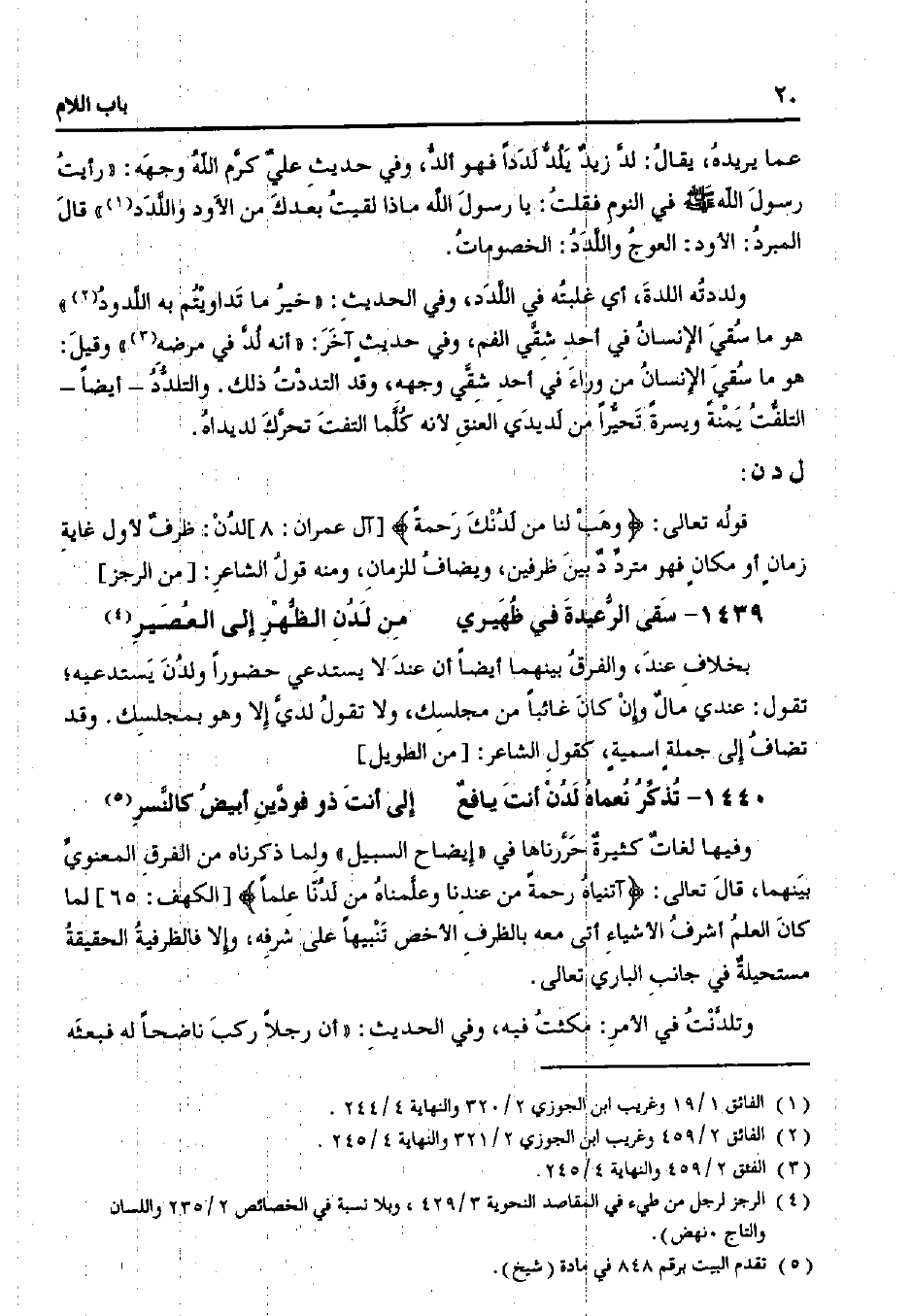 عما يريده، يقال: لد زيد يلد لددًا فهو ألد، وفي حديث علي كرم الله وجهه: "رأيت رسول الله صلى الله عليه وسلم في النوم فقلت: يا رسول الله ماذا لقيت بعدك من الأود واللدد" قال المبرد: الأود: العوج واللدد: الخصومات.