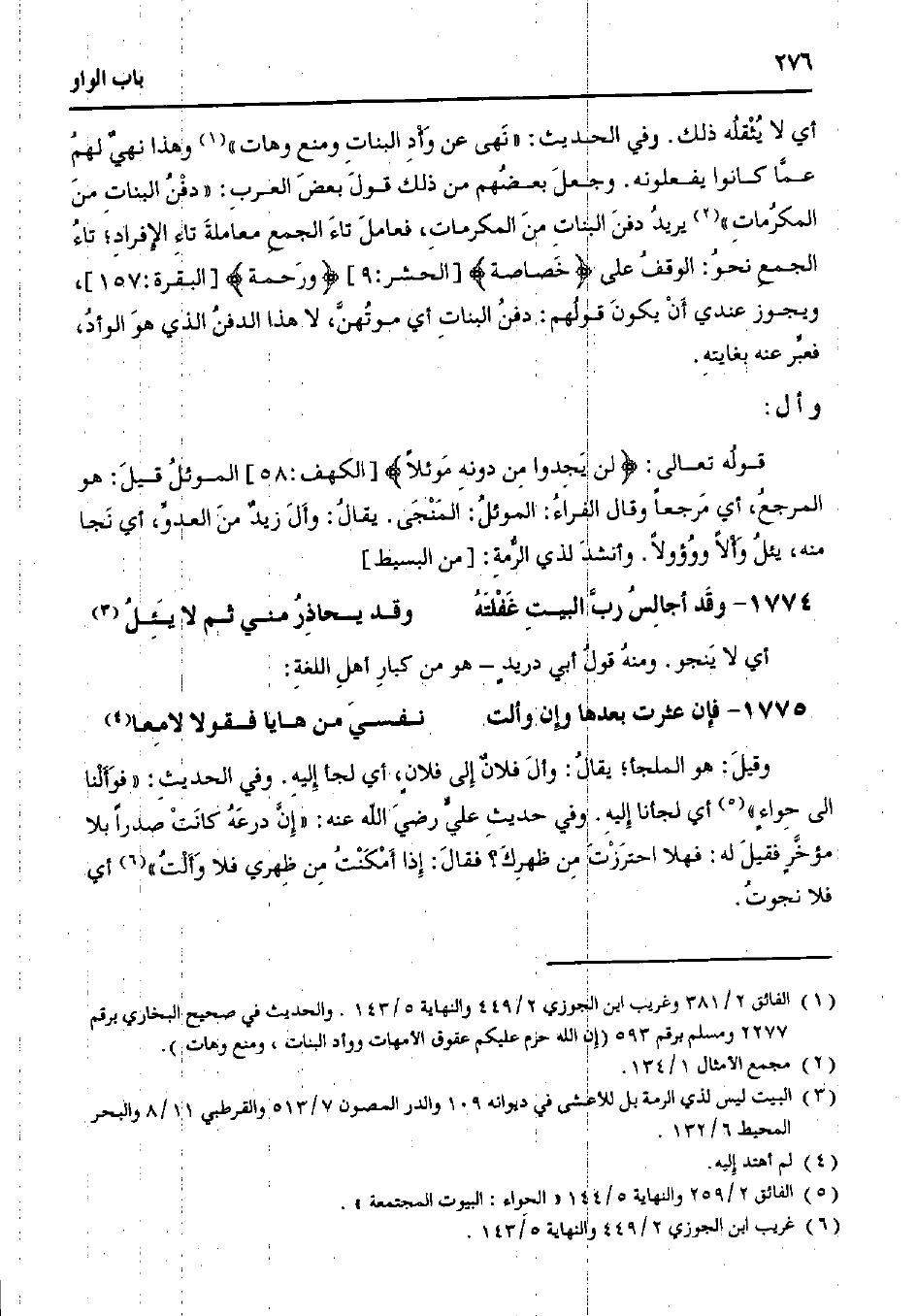أي لا يثقله ذلك. وفي الحديث: "نهى عن وأد البنات ومنع وهات" وهذا نهي لهم عما كانوا يفعلونه. وجعل بعضهم من ذلك قول بعض العرب: "دفن البنات من المكرمات" يريد دفن البنات من المكرمات، فعامل تاء الجمع معاملة تاء الإفراد؛ تاء الجمع نحو: الوقف على {خصاصة} [الحشر:9] {ورحمة} [البقرة:157]، ويجوز عندي أن يكون قولهم: دفن البنات أي موتهن، لا هذا الدفن الذي هو الوأد، فعبر عنه بغايته.