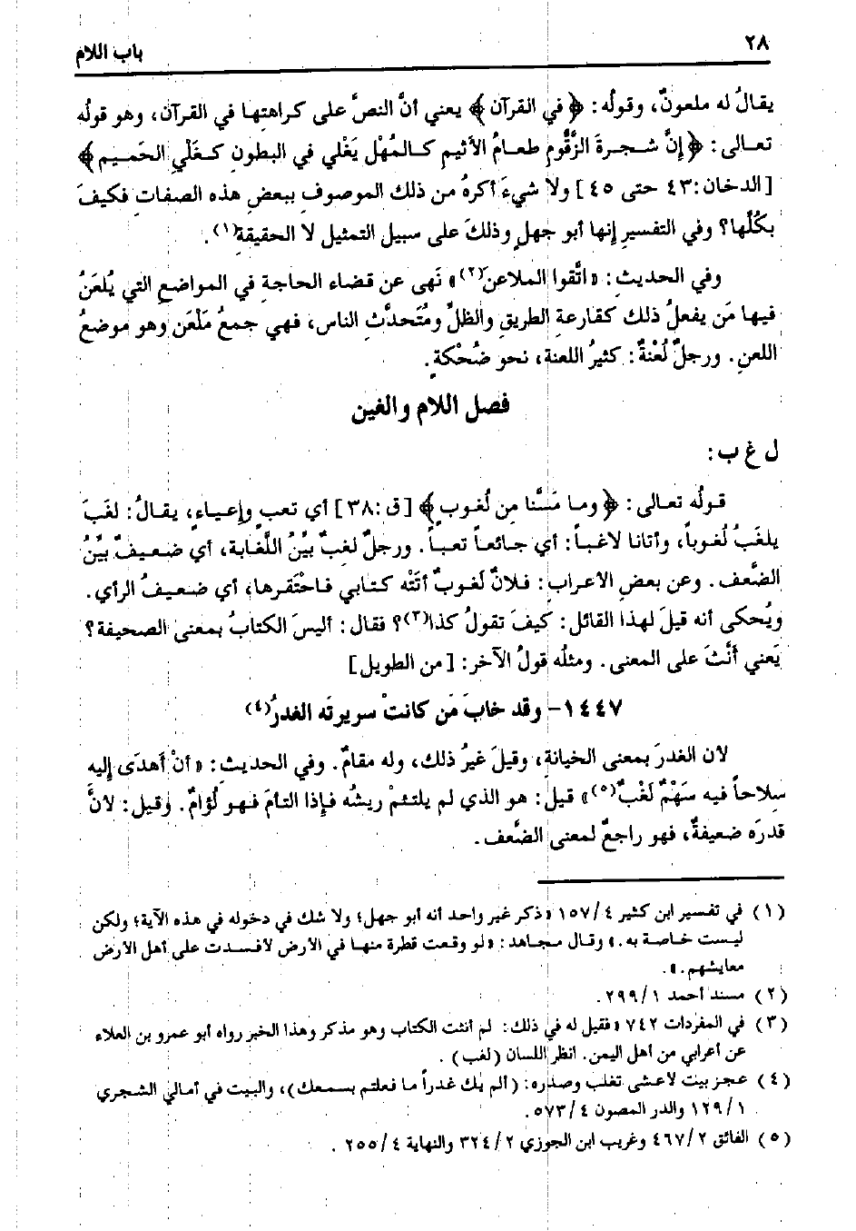 لأن الغدر بمعنى الخيانة، وقيل غير ذلك، وله مقام. وفي الحديث: "أن أهدى إليه سلاحًا فيه سهم لغب" قيل: هو الذي لم يلتئم ريشه فإذا التأم فهو لؤام. وقيل: لأن قدره ضعيفة، فهو راجع لمعنى الضعف.