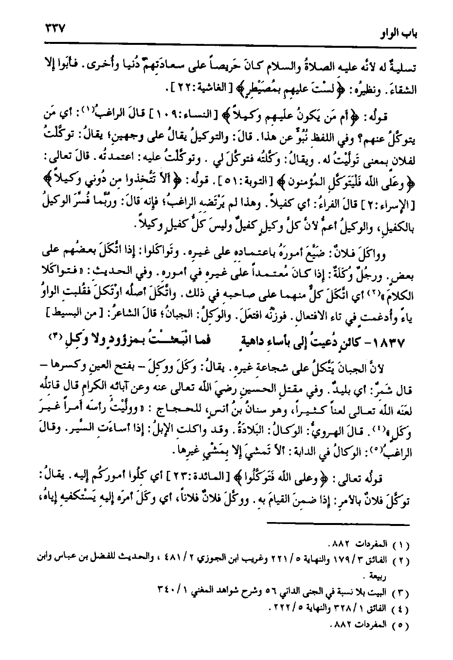 قوله تعالى: {وعلى الله فتوكلوا} [المائدة: 23] أي كلوا أموركم إليه. يقال: توكل فلان بالأمر: إذا ضمن القيام به. ووكل فلان فلانًا، أي وكل أمره إليه يستكفيه إياه،
