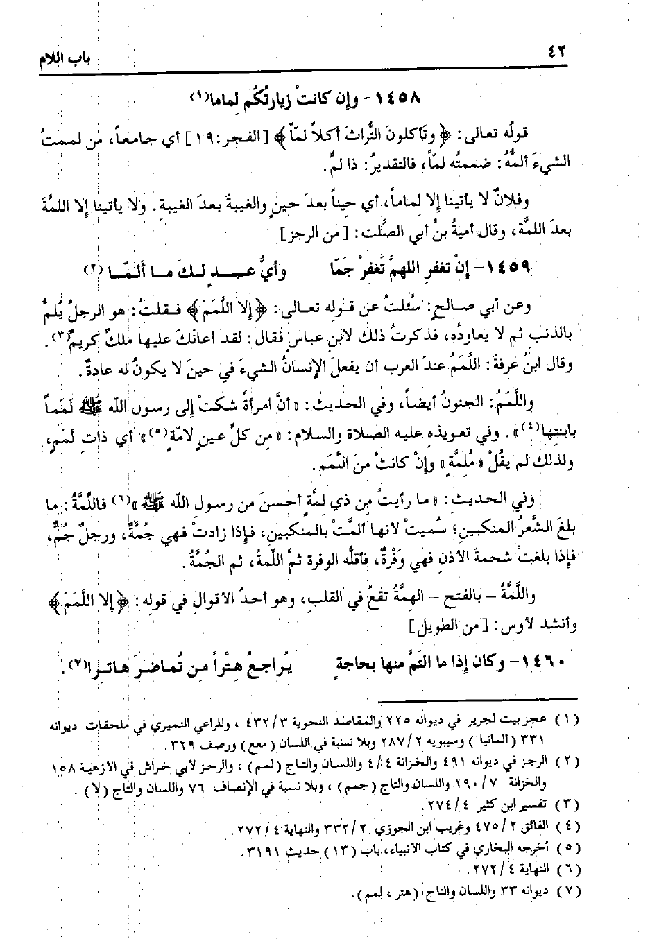 وفلان لا يأتينا إلا لمامًا، أي حينًا بعد حينٍ والغيبة بعد الغيبة. ولا يأتينا إلا اللمة بعد اللمة، وقال أمية بن أبي الصلت: [من الرجز]