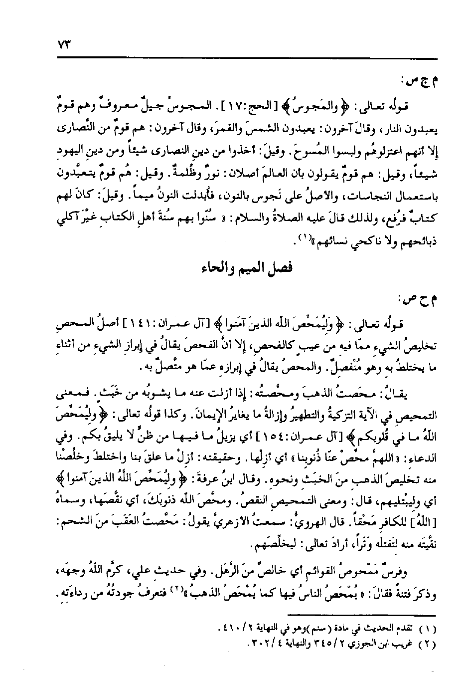قوله تعالى: {والمجوس} [الحج: 17]. المجوس جيلٌ معروفٌ وهم قومٌ يعبدون النار، وقال آخرون: يعبدون الشمس والقمر، وقال آخرون: هم قومٌ من النصارى إلا أنهم اعتزلوهم ولبسوا المسوح. وقيل: أخذوا من دين النصارى شيئًا ومن دين اليهود شيئًا، وقيل: هو قومٌ يقولون بأن العالم أصلان: نورٌ وظلمةٌ. وقيل: هم قومٌ يتعبدون باستعمال النجاسات، والأصل على نجوس بالنون، فأبدلت النون ميمًا. وقيل: كان لهم كتابٌ فرفع، ولذلك قال عليه الصلاة والسلام: «سنوا بهم سنة أهل الكتاب غير آكلي ذبائحهم ولا ناكحي نسائهم».