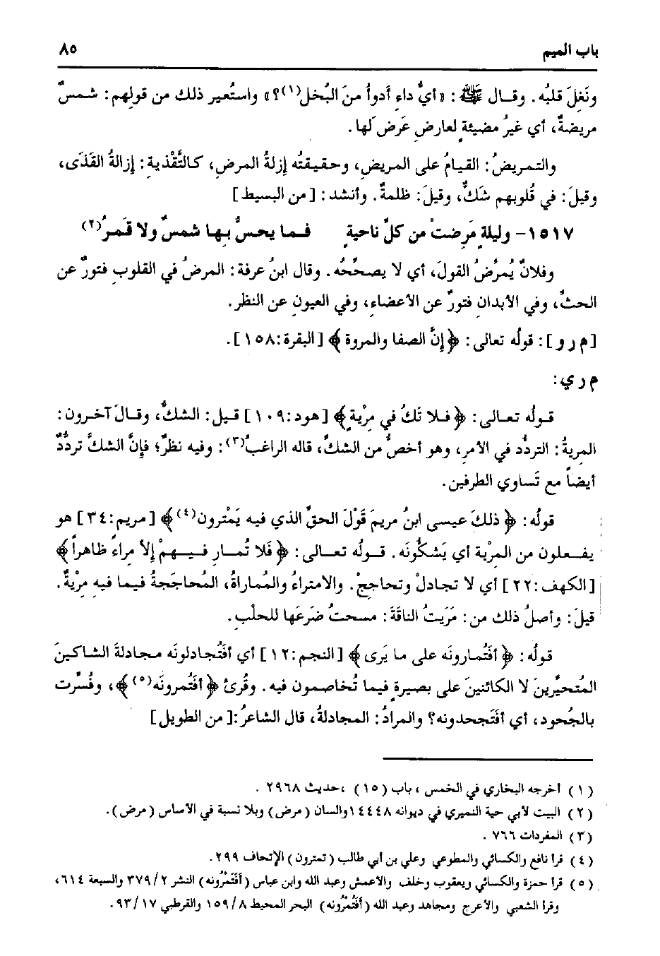 1517 - وليلةٍ مرضت من كل ناحيةٍ ... فما يحس بها شمسٌ ولا قمر